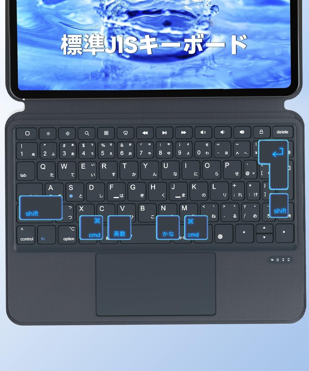 【軽量JIS日本語配列キーボードケース】ipad air キーボード 11インチ は全体約510gの重さ、スリムで軽量なデザインで、通勤の地下鉄や旅行はもちろん、お子様の勉強時にも最適。更に、日本人の方が使い勝手を考えたJIS 日本語配列を採用し、逆L型大型Enterキー、かなと英数キー、左右shiftキー、左右cmdキーを搭載し、ノートPCのように快適なタイピングが実現できるipad air 11インチ ケース キーボードです。
