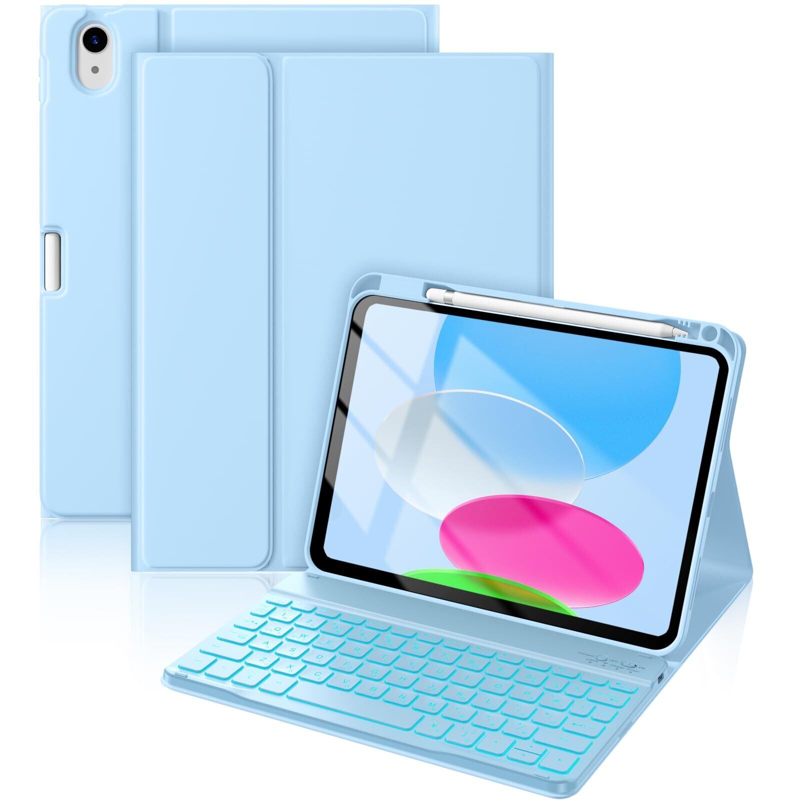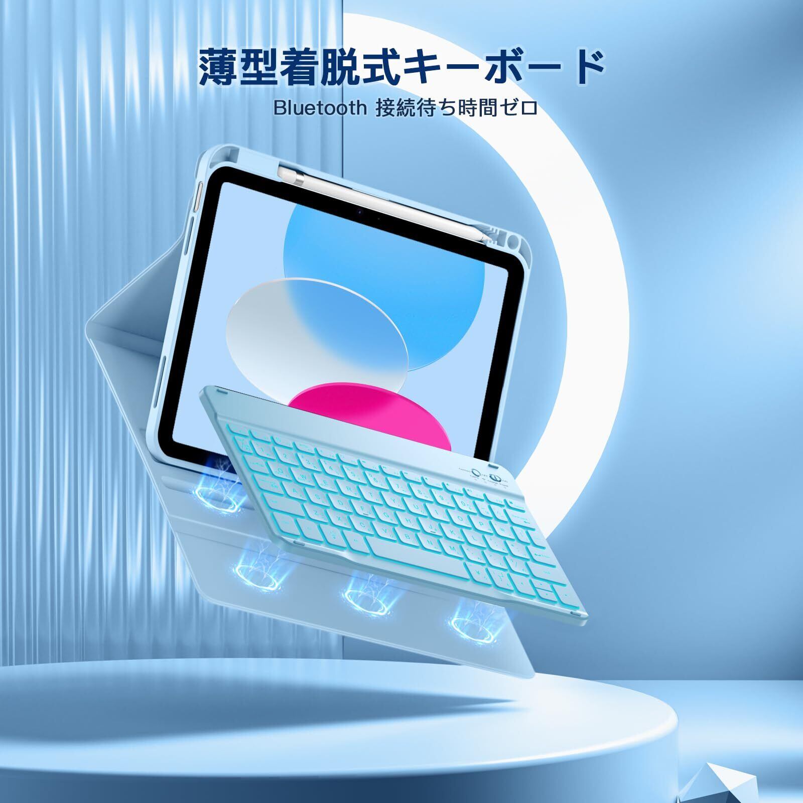 iPad用 キーボード付きケース A16 第11世代/第10世代 JIS日本語配列 7色バックライト 超軽量 着脱式 耐汚れ性素材カバー ペンシルホルダー付き Bluetoothキーボード 多角度調整【日本語取扱説明書付き】