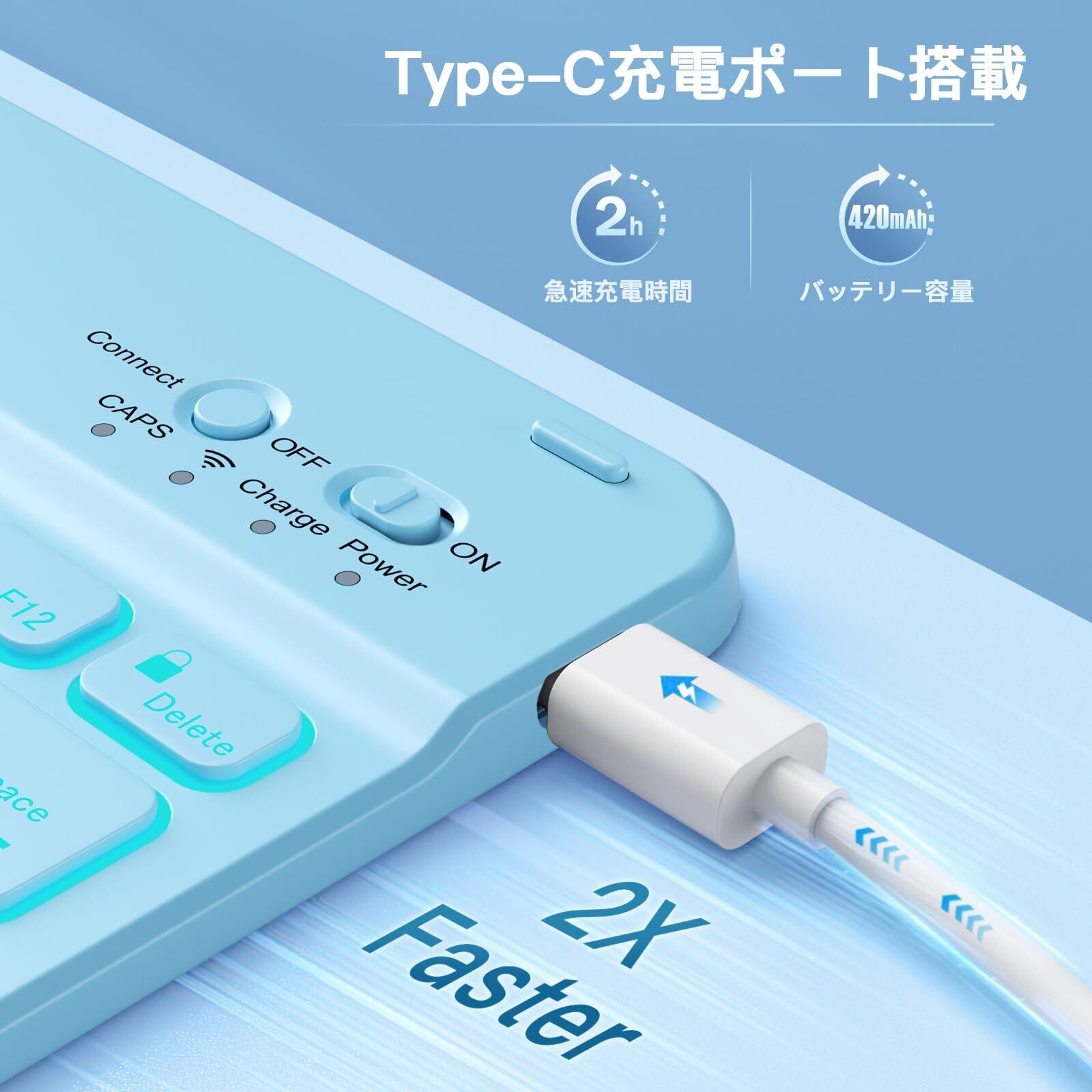【省電力デザイン】アイパッド キーボードはオートスリープ機能搭載なので、ケースを閉じるとiPadがスリープモードに入り、省エネです。不使用時に電源スイッチをオフにして電力消耗を防止できます。Type-C充電式、2時間でフル充電ができ、最大100時間使用可能です。