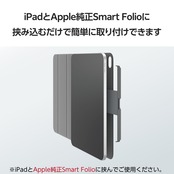 iPadとApple純正Smart Folioに挟み込むだけで簡単に取り付けが可能です。