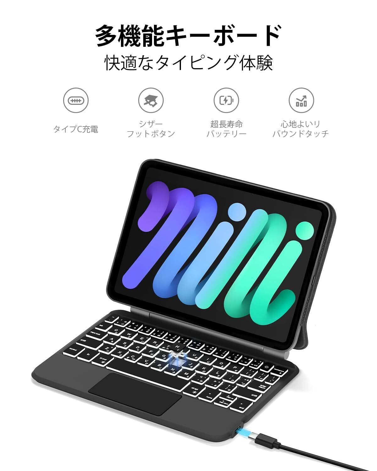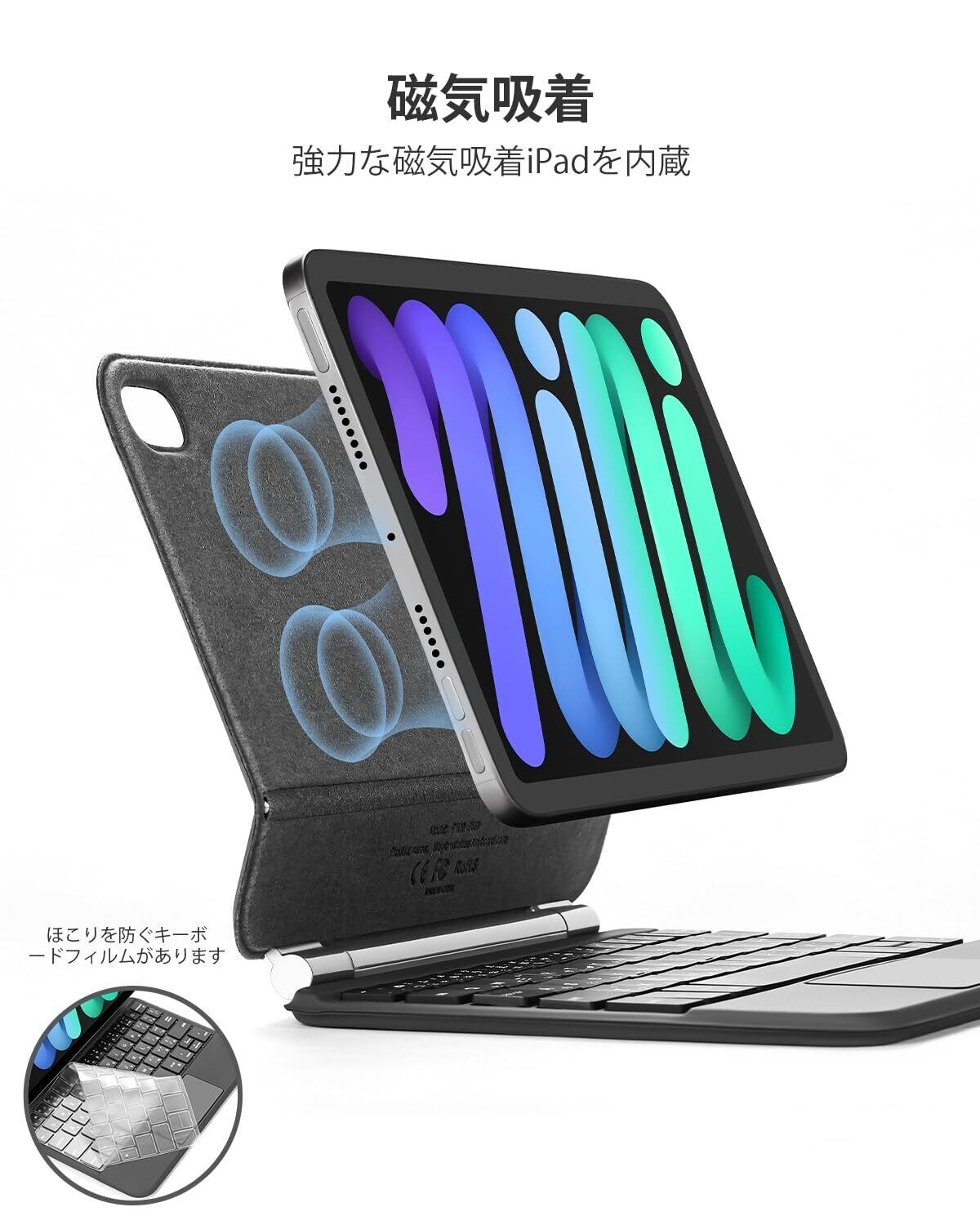 【スマートトラックパッド】:このマジックキーボードはスマートトラックパッドを内蔵しており、1本の指、2本の指、3本の指のマルチタッチジェスチャをサポートします, 第六世代 iPad mini 8.3インチ 2021 に最適なコンパニオンです【日本語取扱説明書付き】