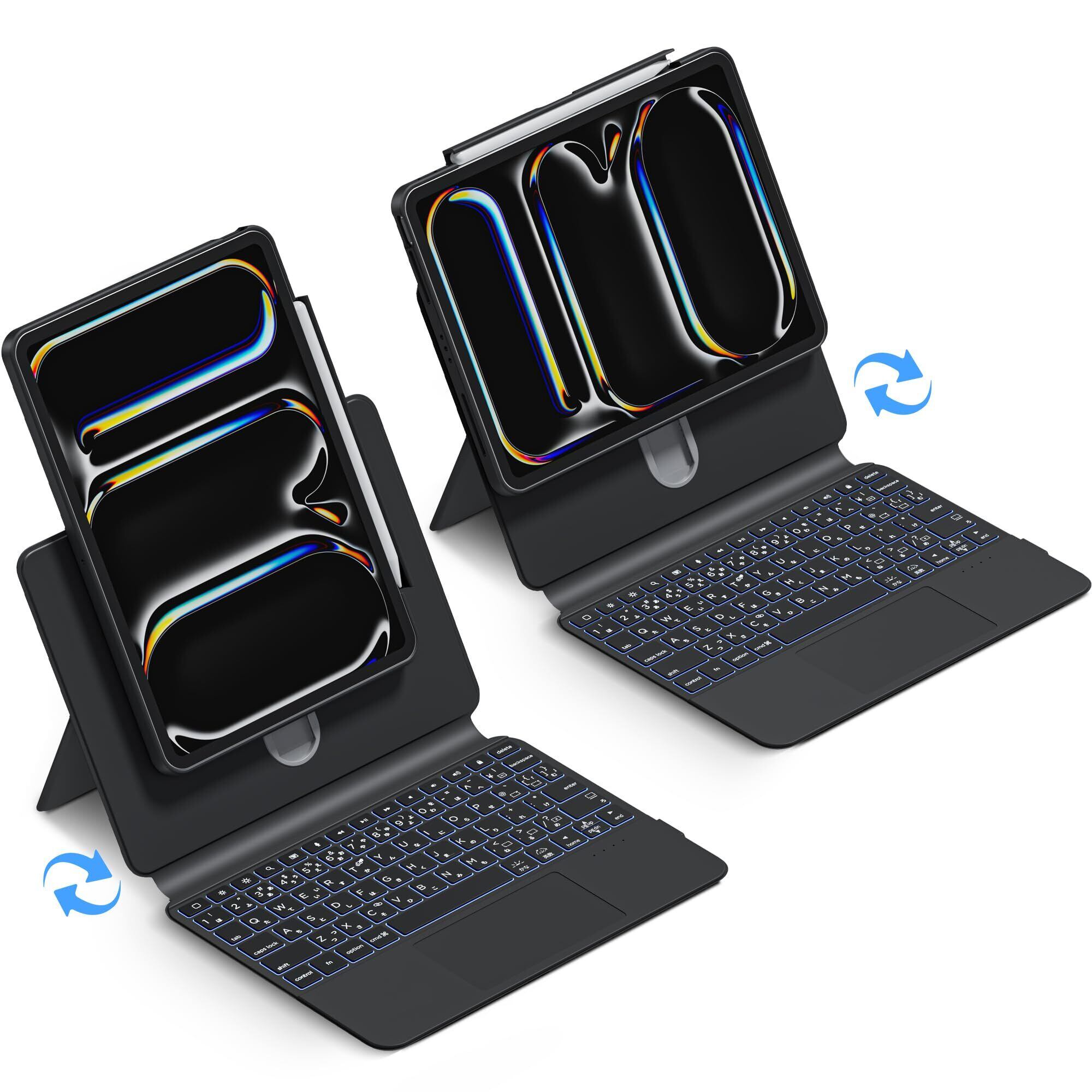 2025新登場 ipadキーボード マジックキーボード JIS日本語配列 トラックパッド搭載 7色バックライト iPad第10/11世代対応 第7/8/9世代対応 10cm高さ調節可能 360°画面回転 超薄型 超軽い 耐久性保護 (ブラック, iPad Air4/Air5/Air6 11インチ 対応)