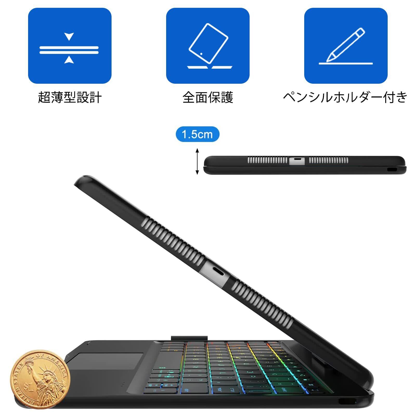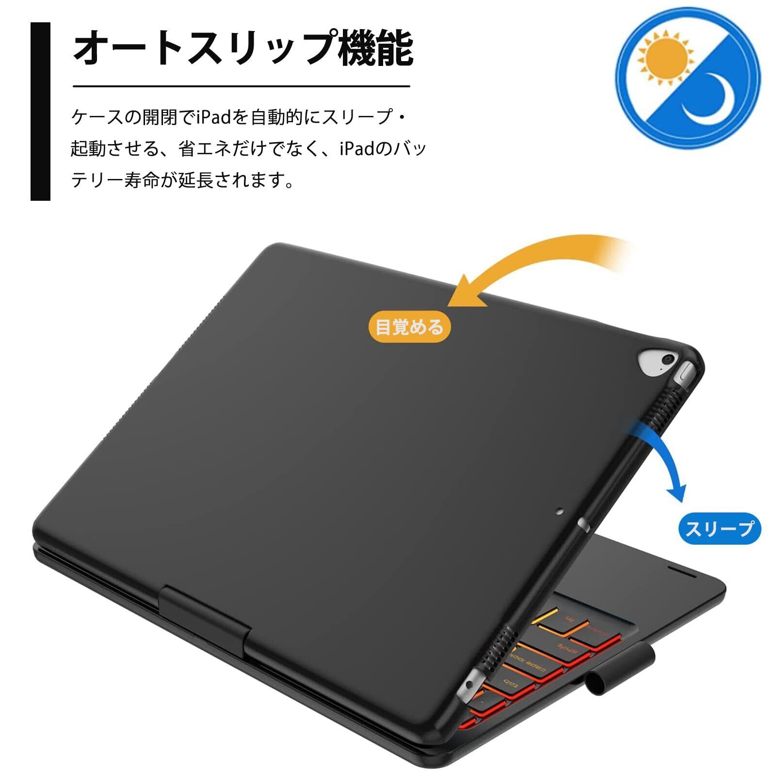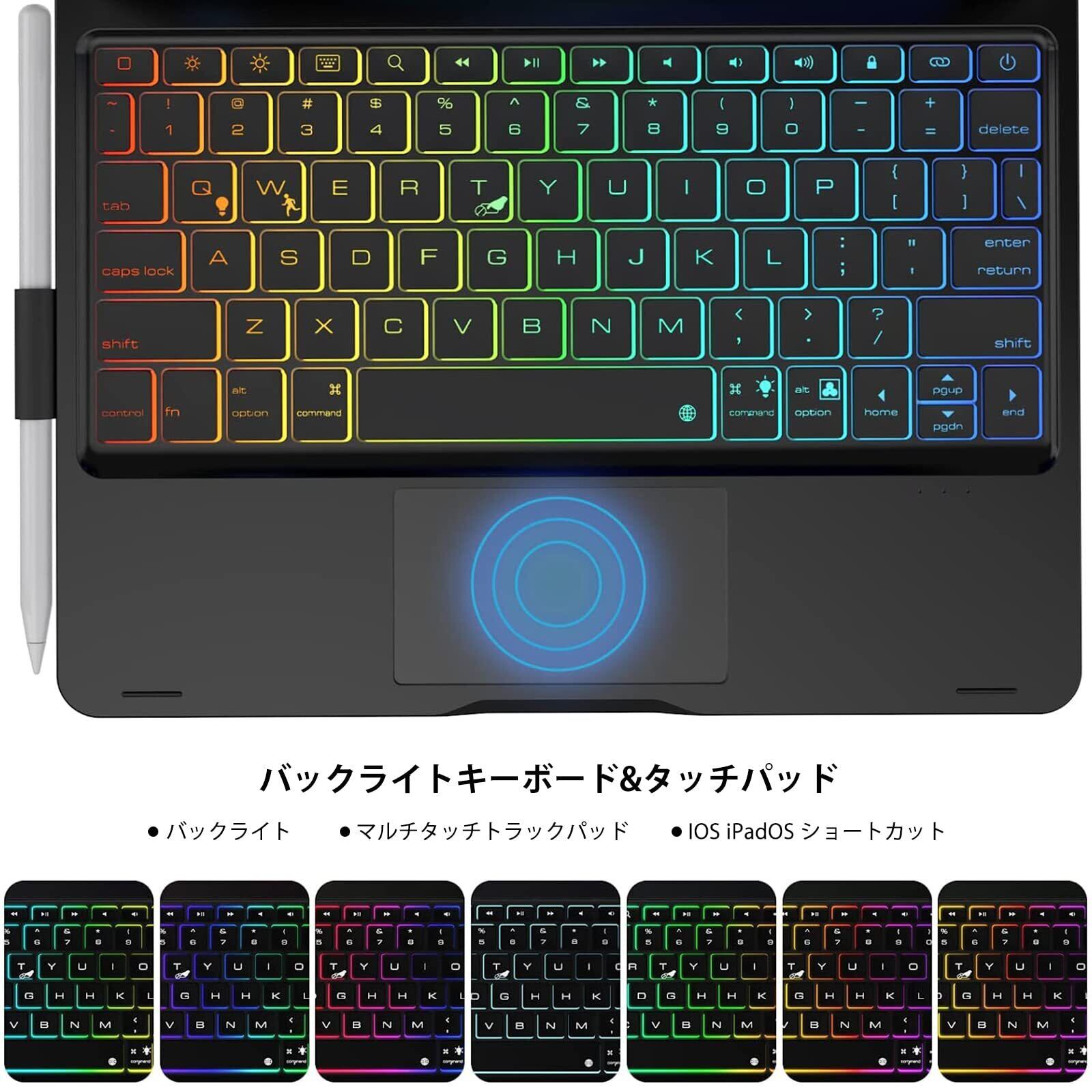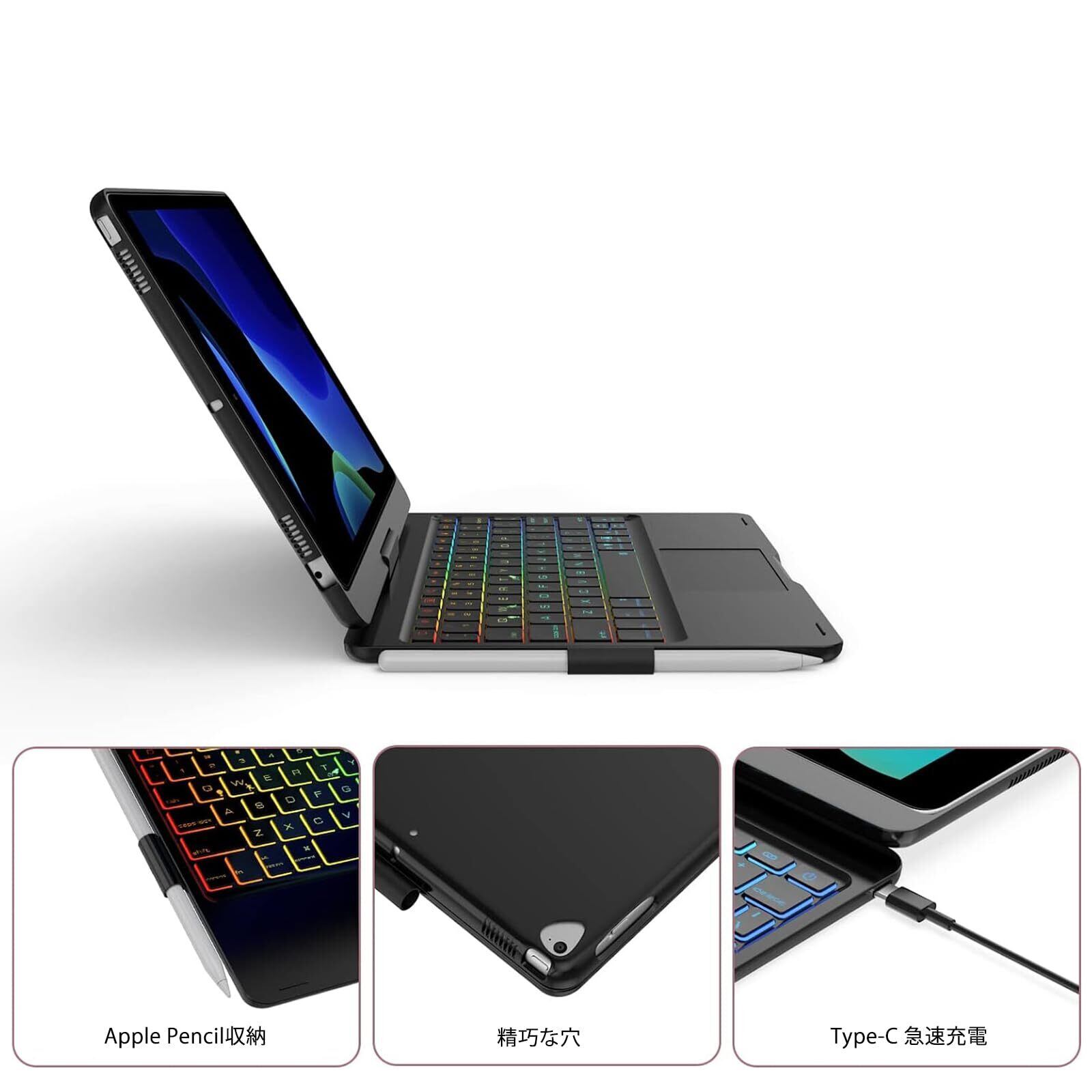 [2025年進級版]360°回転 iPad 第9/8/7世代 キーボードケース 10.2インチ 180°反転 ipad Air 3 キー ボード付きケース ipad pro 10.5インチ タッチパッド付き 7色バックライト 急速充電可能 全 面保護Bluetoothキーボード一体式 Apple pencilを充電可能 スタンド機能付きブラック
