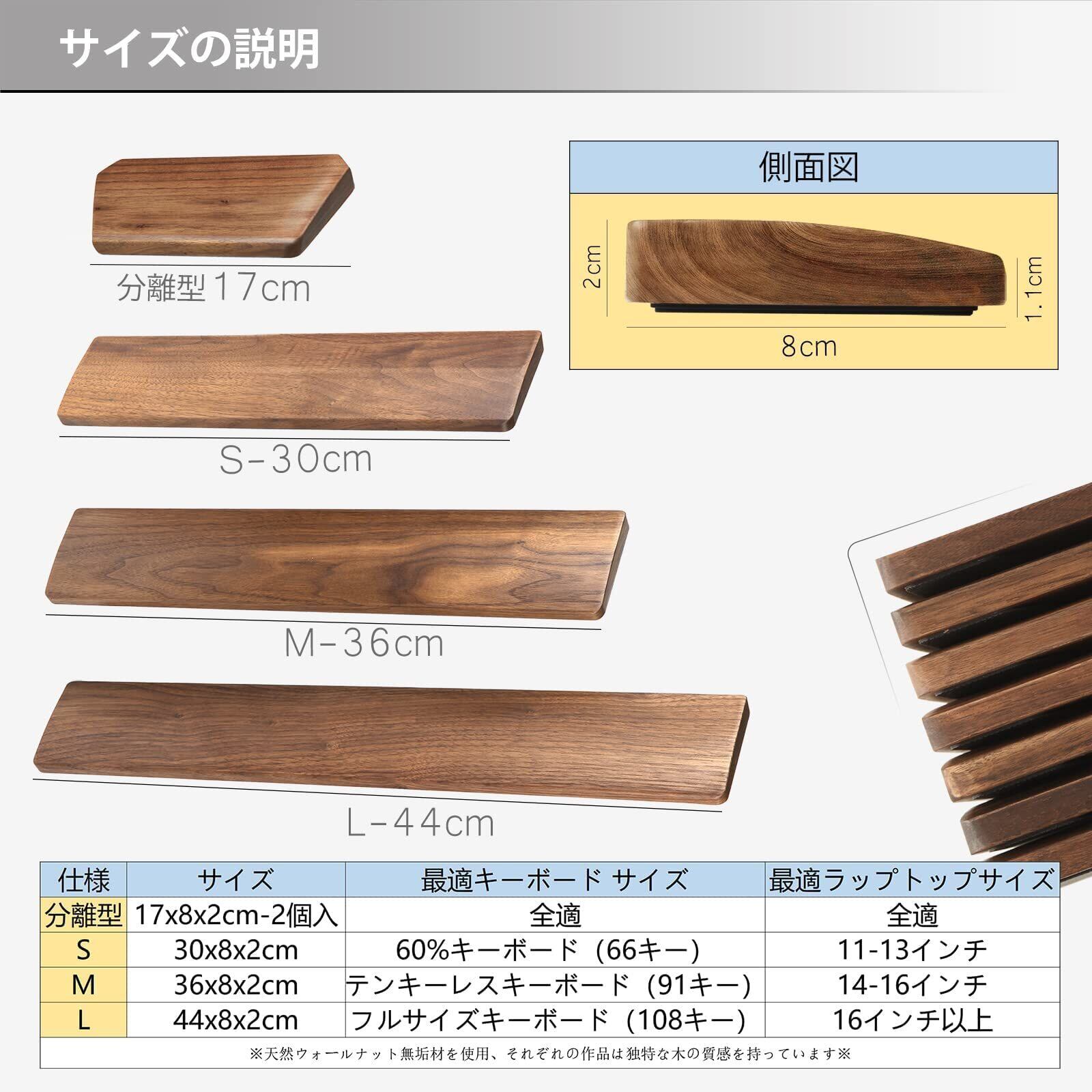 Faluber 木製リストレスト アームレスト ウッドパームレスト ウォールナット 無垢材 天然木 おしゃれ すべり止め付 人間工学 キーボード用 (ウォールナット, S-300mm)
