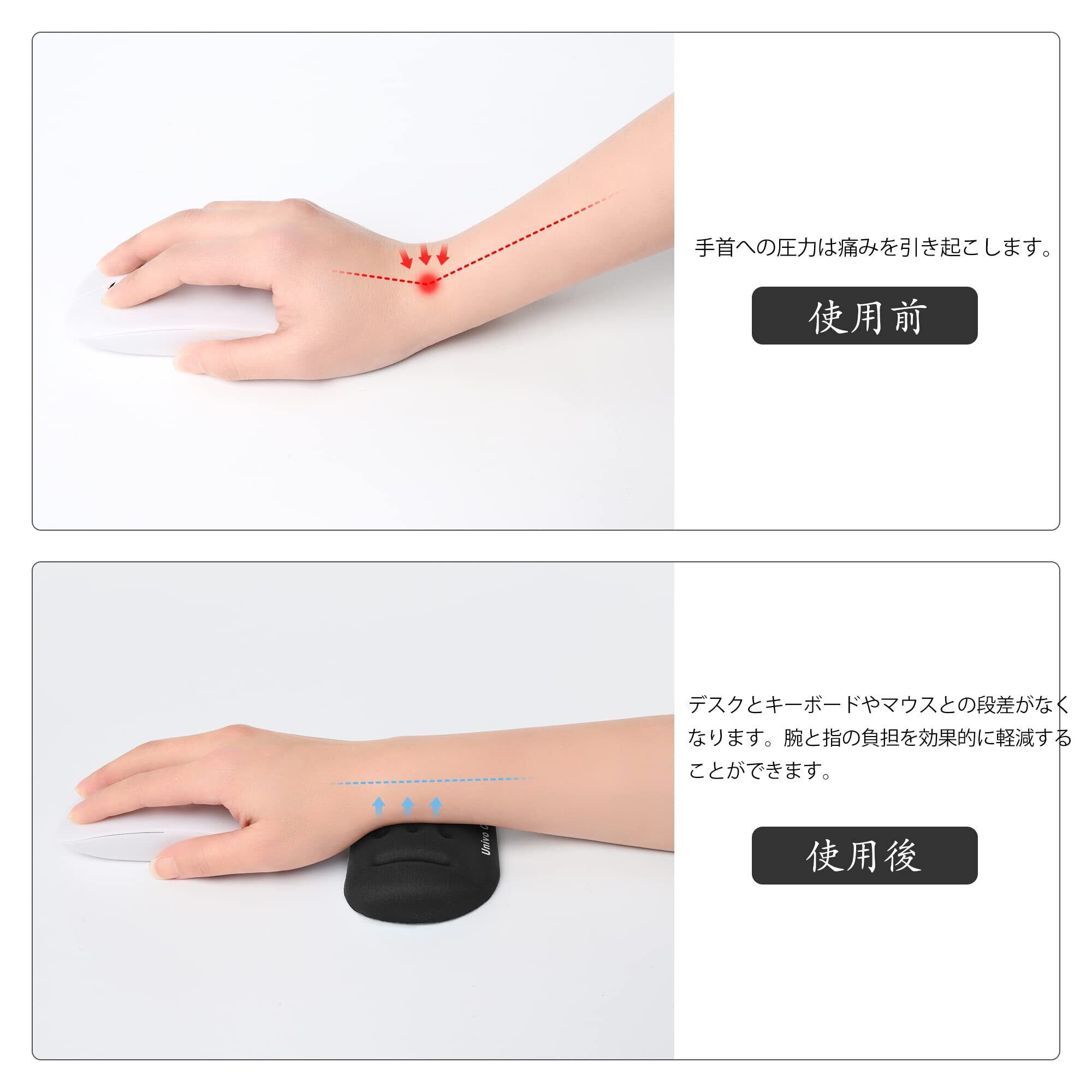 UnivoColors マウスリストレスト 手首置き 疲労低減 通気性 あり 肌に刺激なし 人間工学デザイン 柔らかい素材 ストレス解放 マッサージホール付き(ブラック)