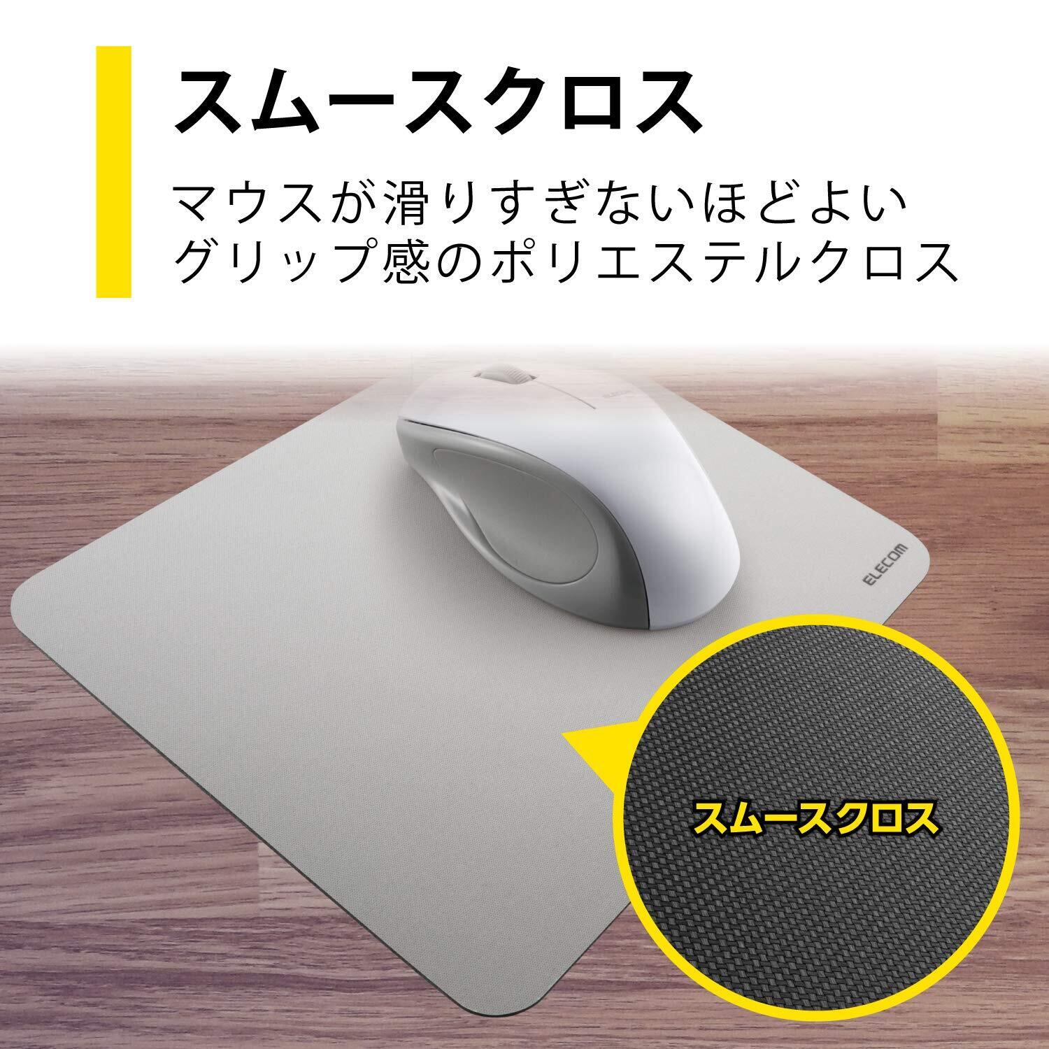 表面にはスムースクロスを採用し、マウスが滑りすぎないほどよいグリップ感のポリエステルクロスを採用したシンプルマウスパッドです。