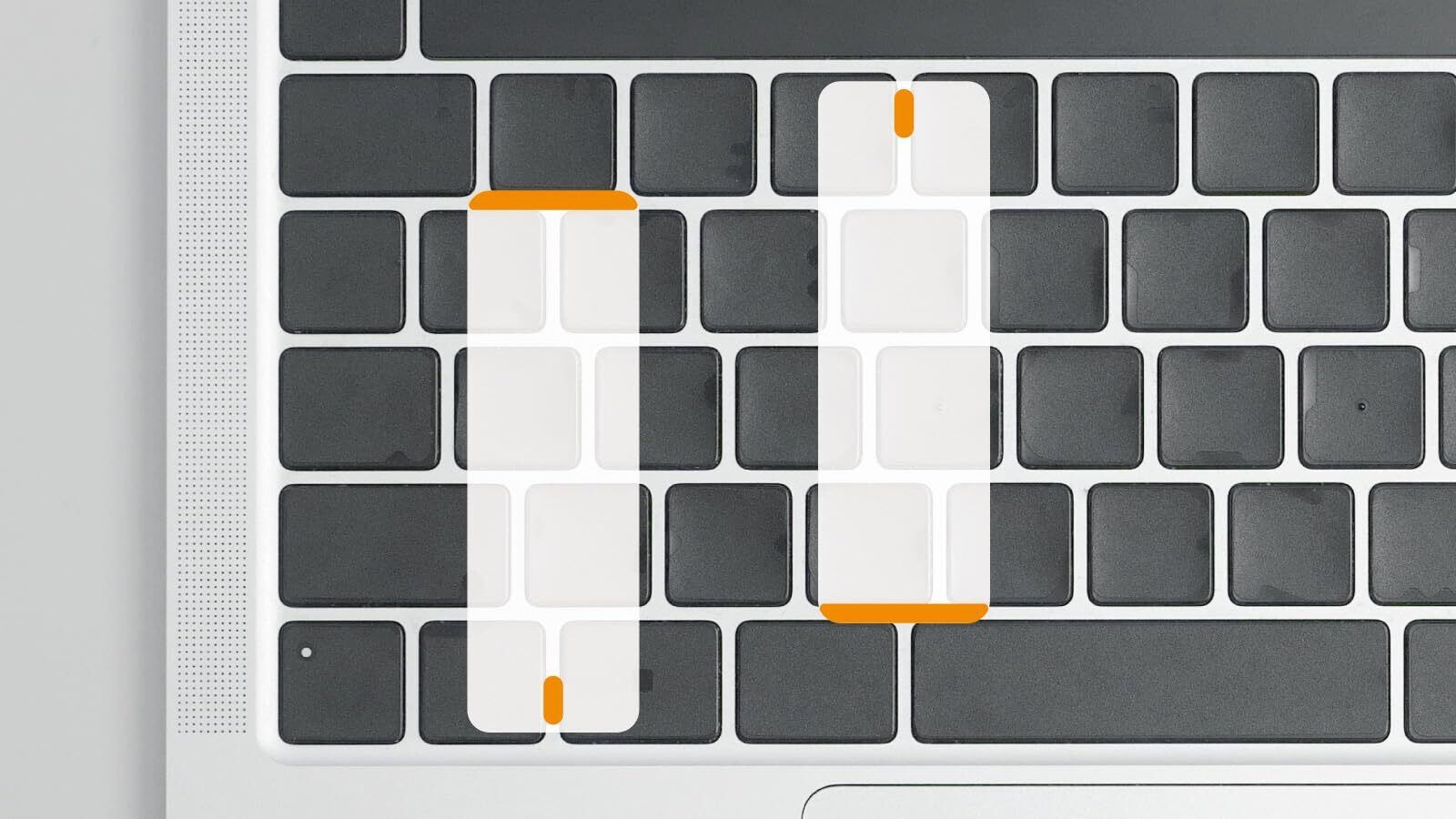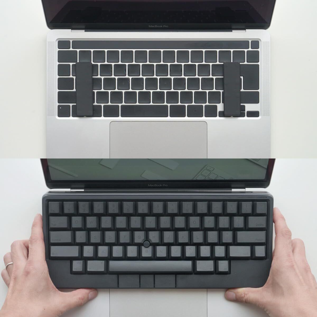 外付けキーボードを置く板面の薄さは約4mm。 画面をできるだけ隠さず快適さを確保します。 ※写真はMacBook Pro 13" 2020~(M1)