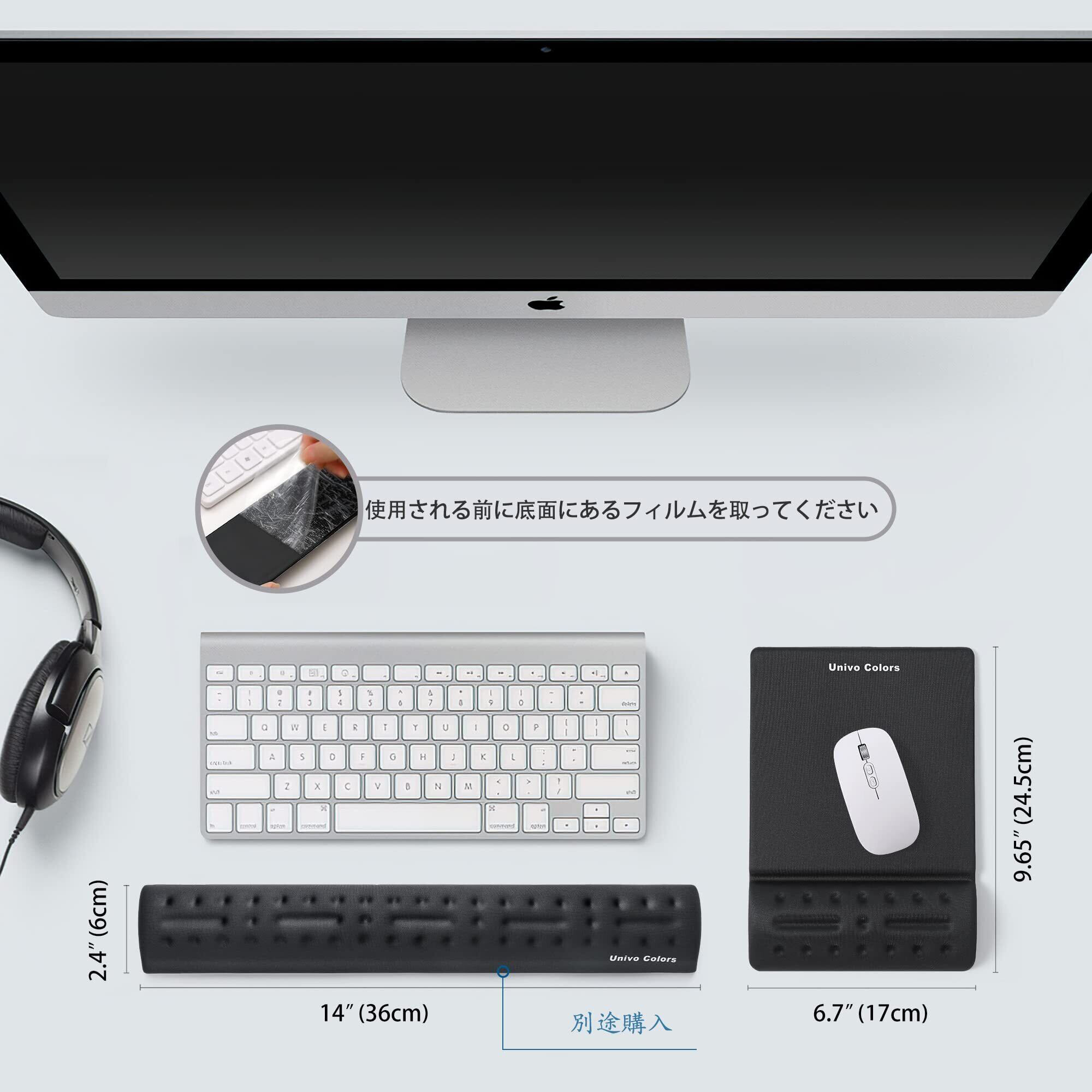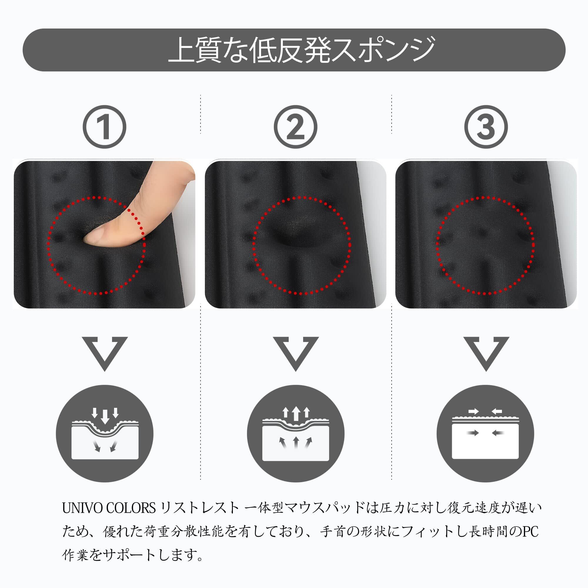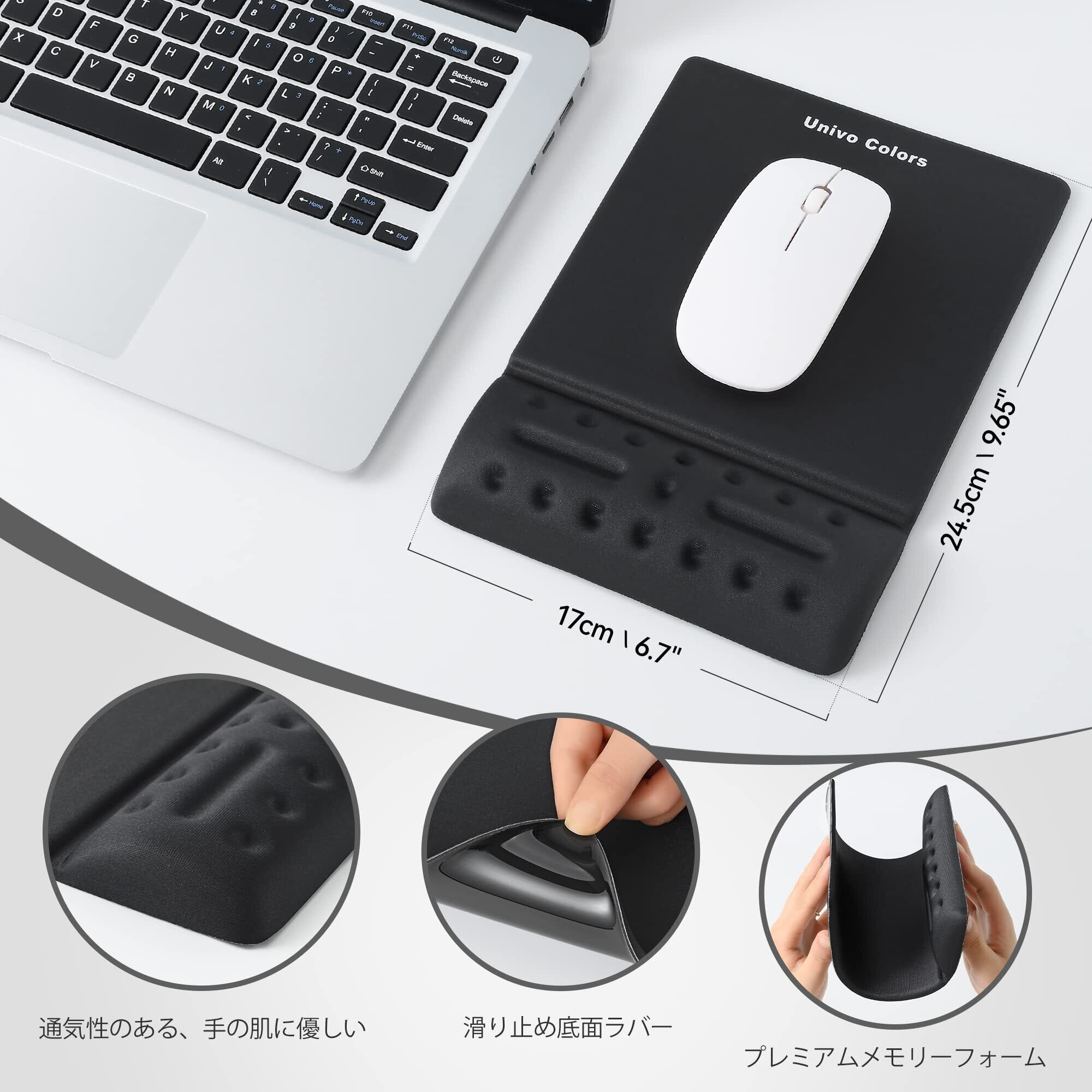 Univo Colors マウスパッド リストレスト一体型マウスパッド 245mm×170mm 疲労低減 人間工学デザイン 柔らかい素材 ストレス解放 手首置き 通気性 あり 肌に刺激なし マッサージホール付き 滑り止め(ブラック)