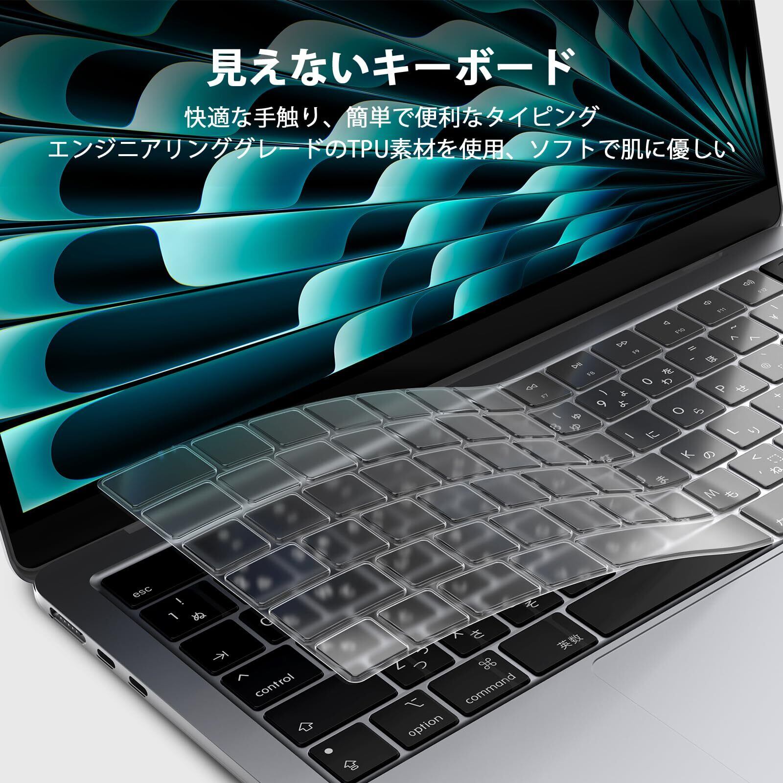 【JP JIS配列2025 M5 】キーボードカバー用Macbook Pro 14/16インチ Air 13/15インチ (2021-2025) M5 M4 M3 M2 0.12MM極薄 透明防塵防水プレミアムプロテクター A3434 A3240 A3113 A3114 A2681 A3241 A3112 A3401 A2991 A2992 A2442 A2941 EooCoo、TPU透明