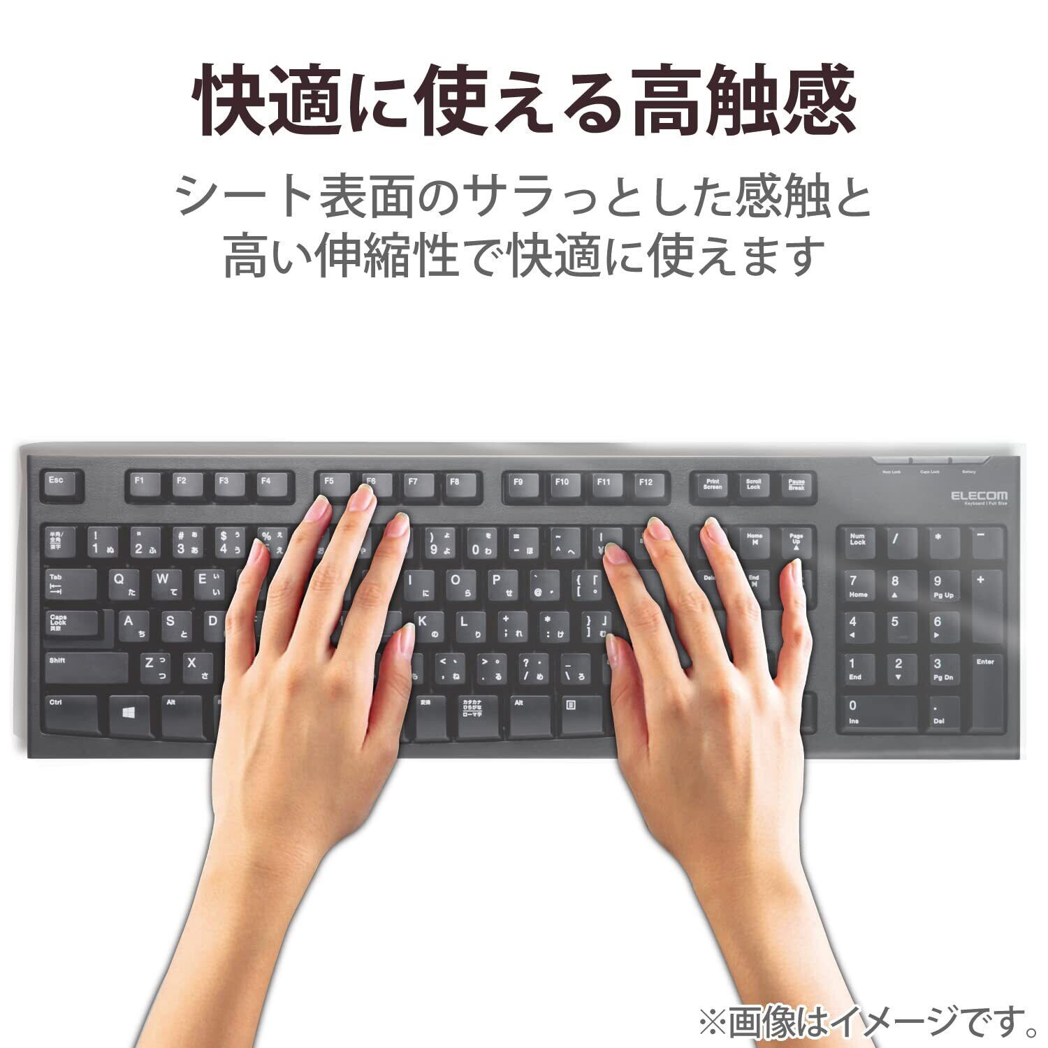 ■やわらかく伸縮性がよいので、シートの上からでも違和感なく自然なキータッチ、隣のキーへの干渉もありません。