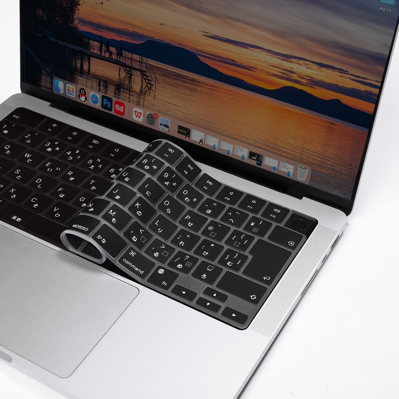 MOSISO ノートパソコン キーボードカバー 対応機種 MacBook Air 13.6/15(M3 M2チップ)A3113 A2681 A3114 A2941/ Pro 14/16(M4 M3 M2 M1チップ) 2025-2021発売、保護 防塵 耐水 シリコンスキン 日本語 JIS配列(ブラック)