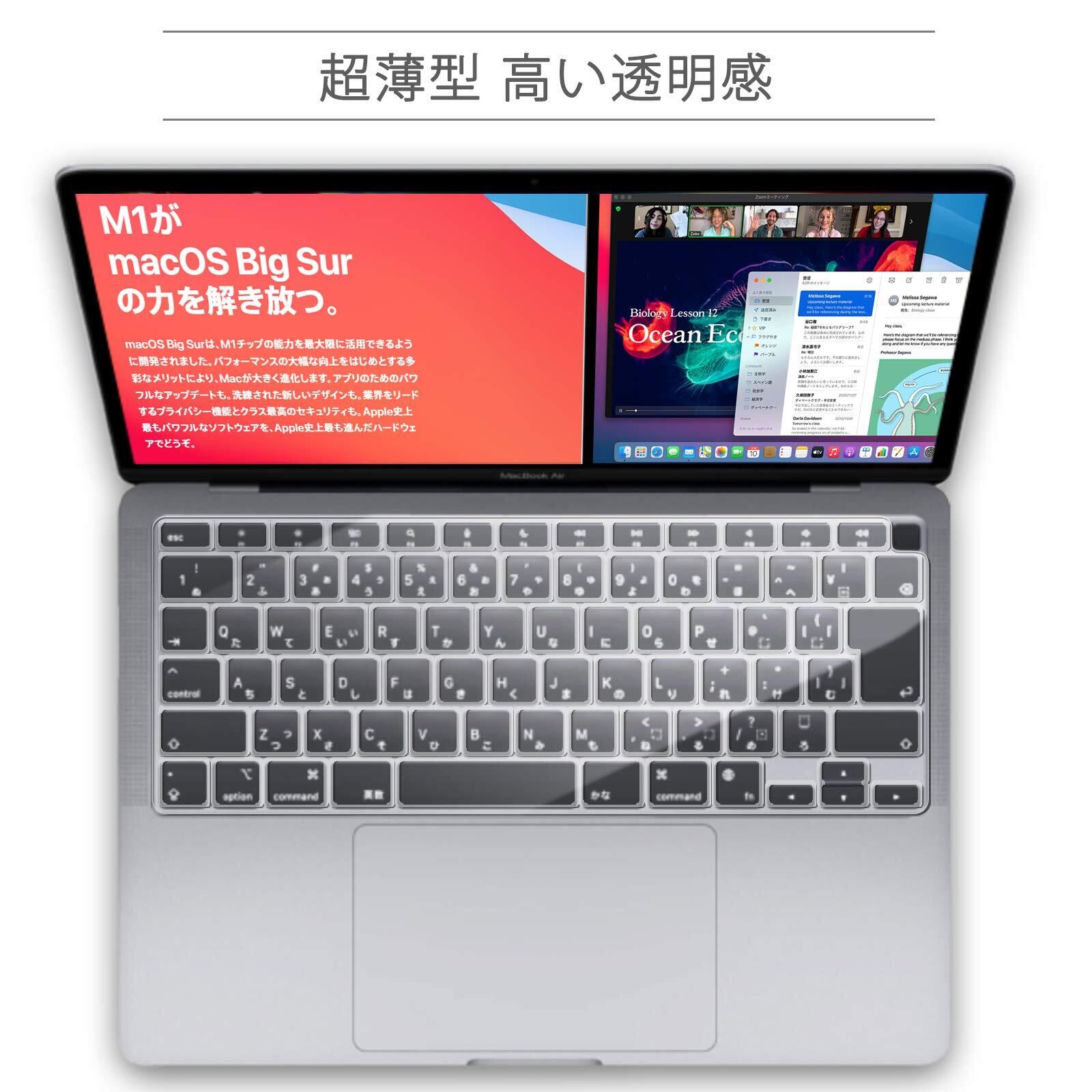 【2020年11月最 M1チップ 搭載 モデル】Macbook Air 13 2020 A2337/A2179用 キーボードカバー 日本語JIS配列 極薄 高い透明感 防水 防塵 耐磨 マックブック エアー 13インチ 保護 フィルム