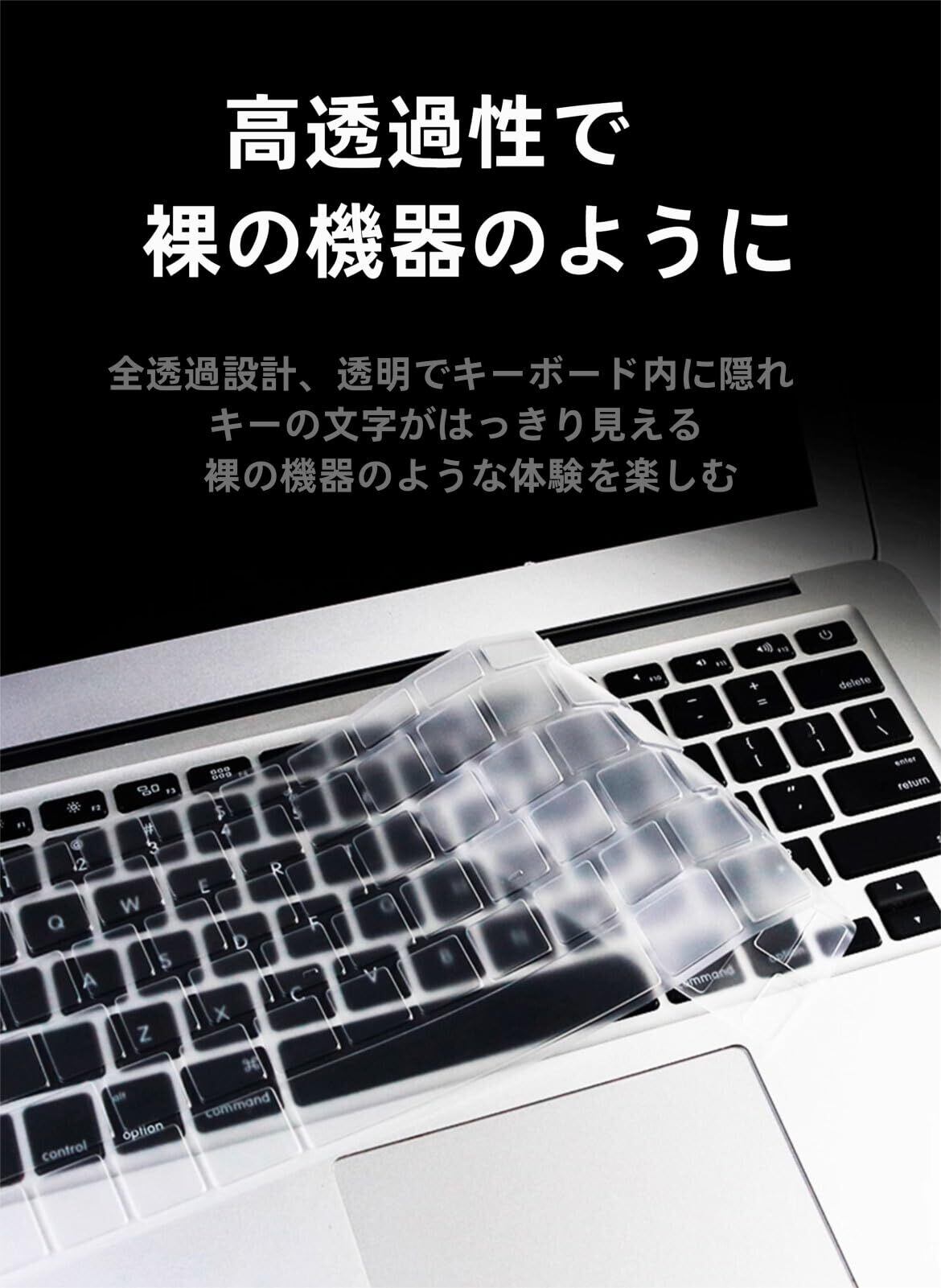 【高品質TPUシリコン素材】高品質なTPUシリコンを使用しているため、透明度が高くでMacBookの美しいデザインを保ちながら、 ほこり、水分、小さな傷からキーボードを確実にガードします。しかも、柔軟性と耐久性を兼ね備え、黄ばみにくい特性を持っています