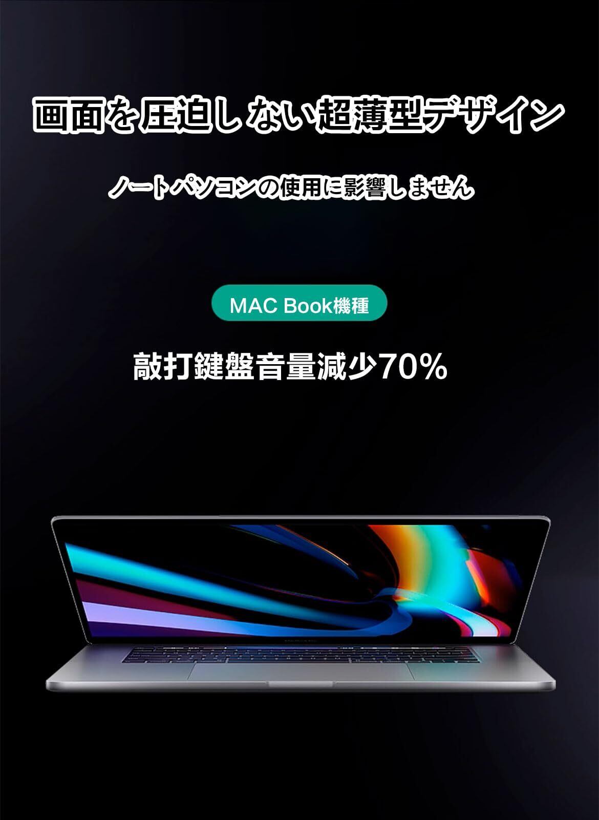 タイピングの快適さをそのままに、ほこりや液体の侵入から大切なMacBookのキーボードを守りたい。そんな細やかな要望に応えるのが、このMacBook Air / MacBook Pro 専用設計のキーボードカバーです。