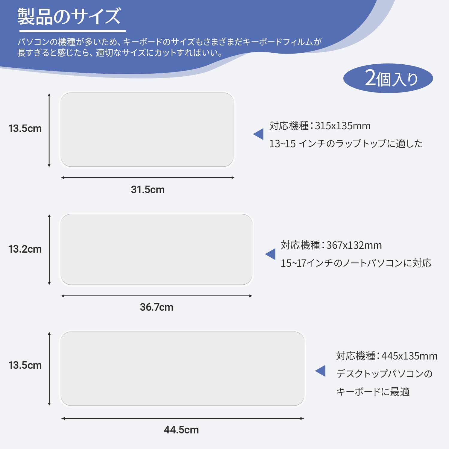 ノートパソコン キーボードカバー 2枚入り 3仕様 超薄型 静音設計 防水防塵 耐磨 NEC 東芝 Surface MacBook Air/Pro Dynabook DELL HP対応 キーボードプロテクター (15〜17インチ)