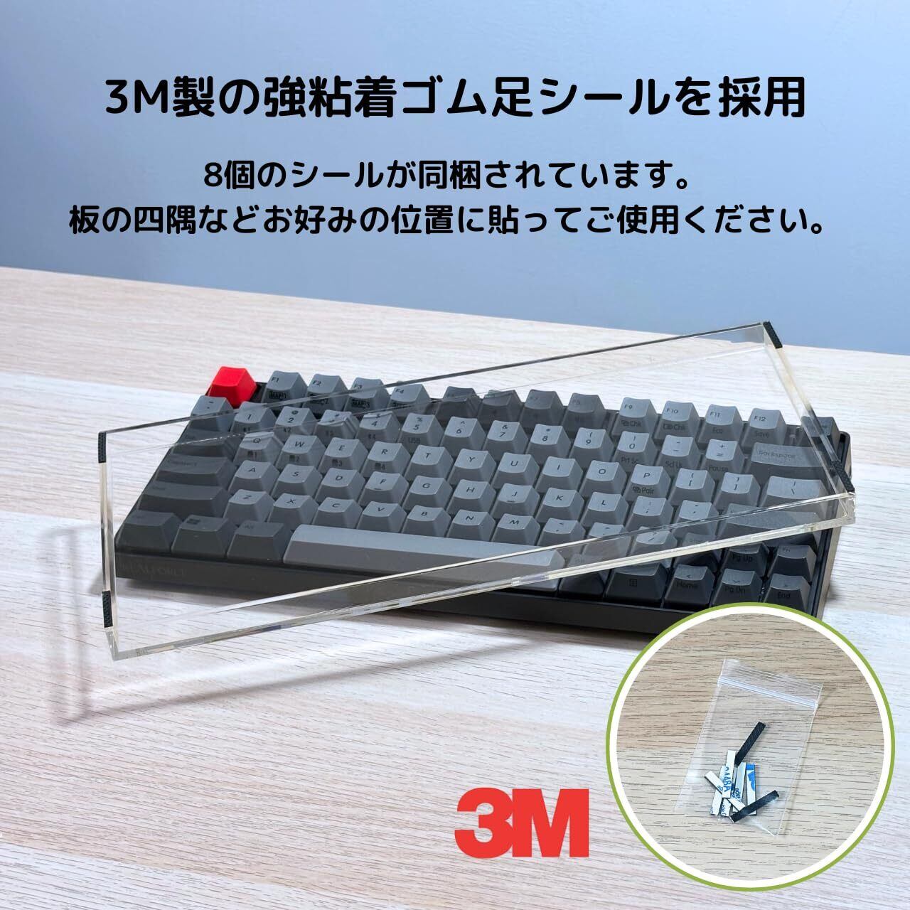 【3M製ゴム足シールでしっかり固定】3M製の高粘着ゴム足シールを採用。滑り止めとクッション性を兼ね備え、キーボードに傷がつくのを防ぎます。8枚同梱されており、好みの位置に貼り付けてからご使用ください。