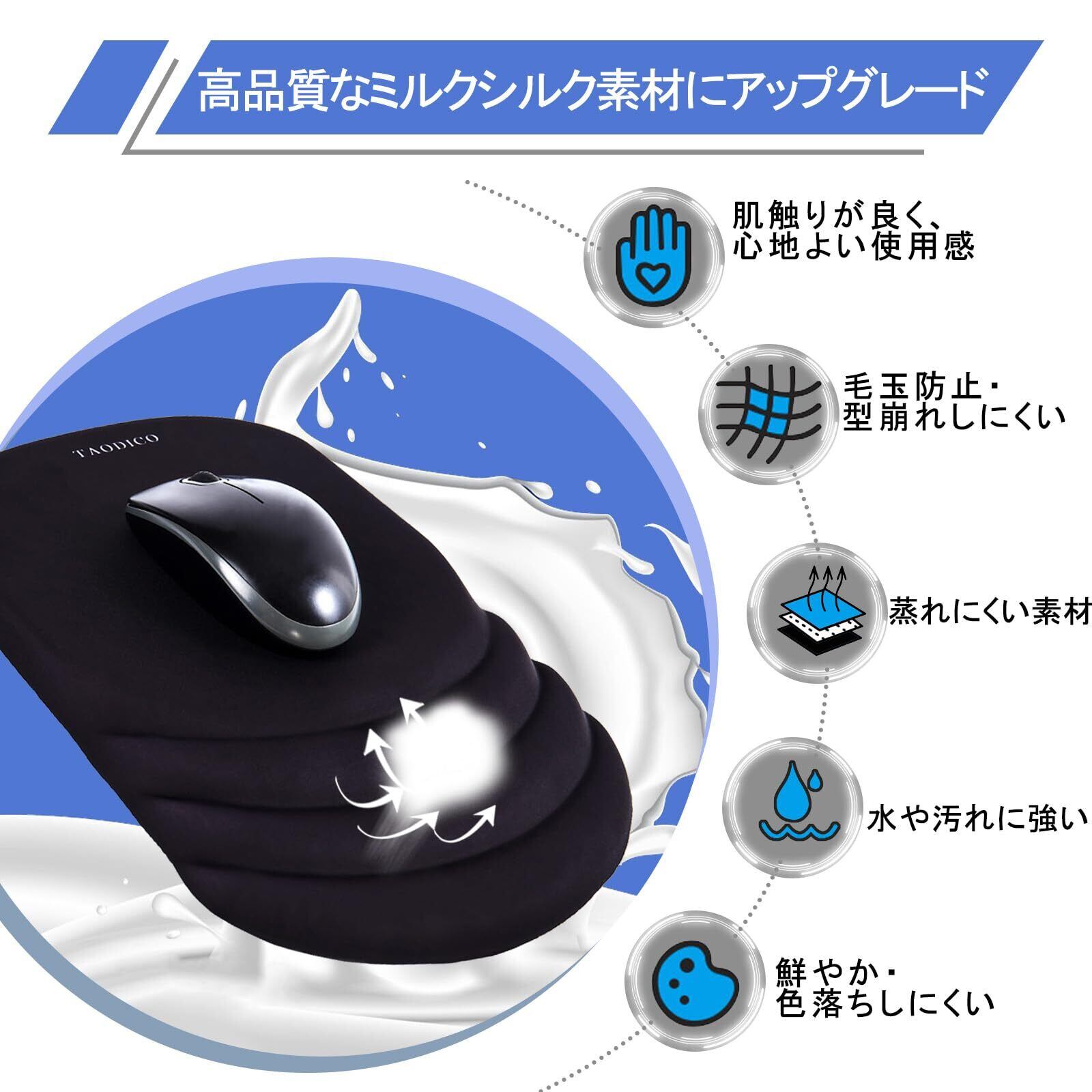 特徴 スムーズ, 手首サポート, 滑り止め, 耐傷性, 耐退色性