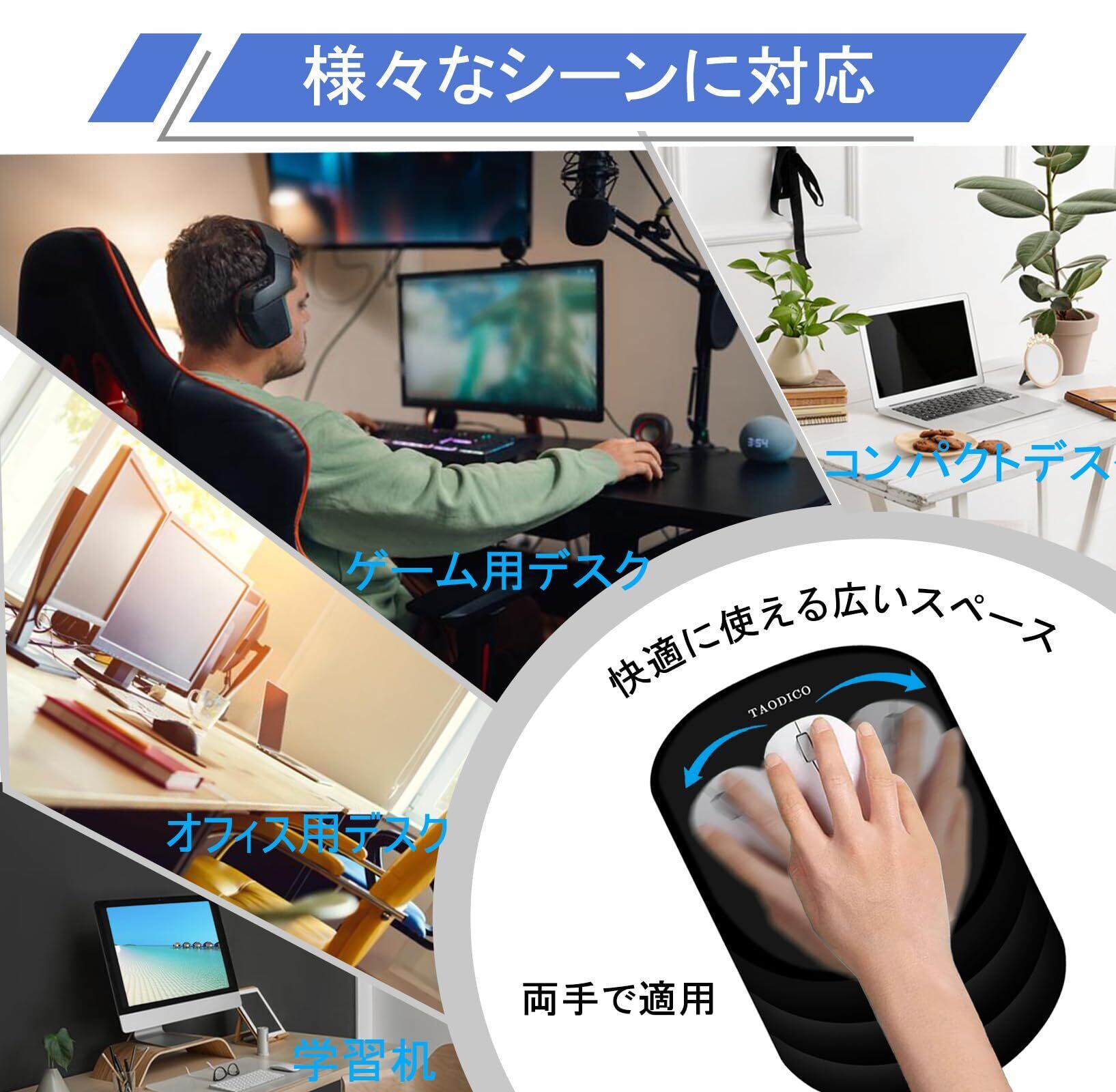 手首サポート付きマウスパッドの最適なサイズ:12x8x1.2インチ(300x200x30mm)で、十分な操作スペースを提供し、右利きまたは左利きでの使用に非常に適しており、誰もが快適に仕事やゲームをプレイできます。