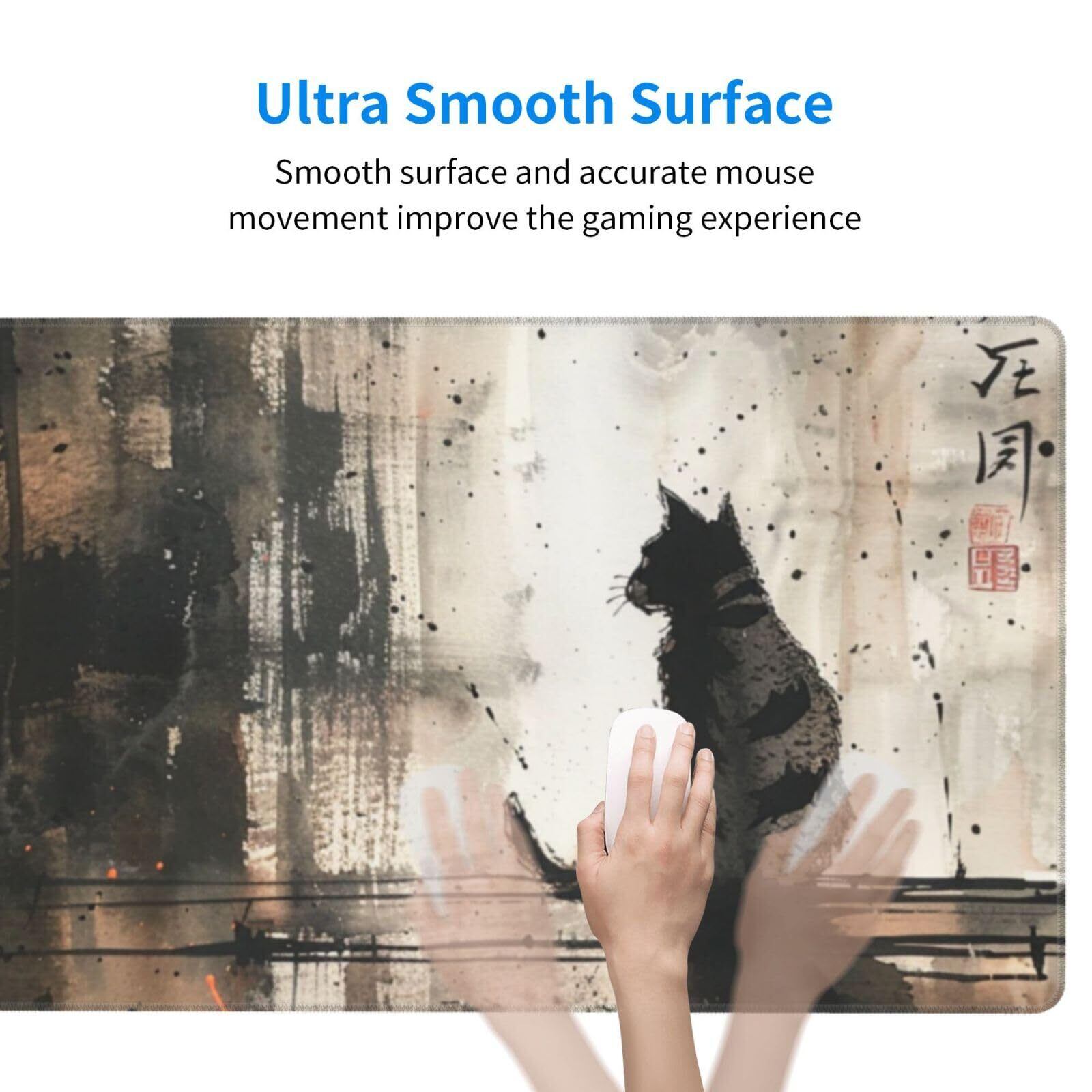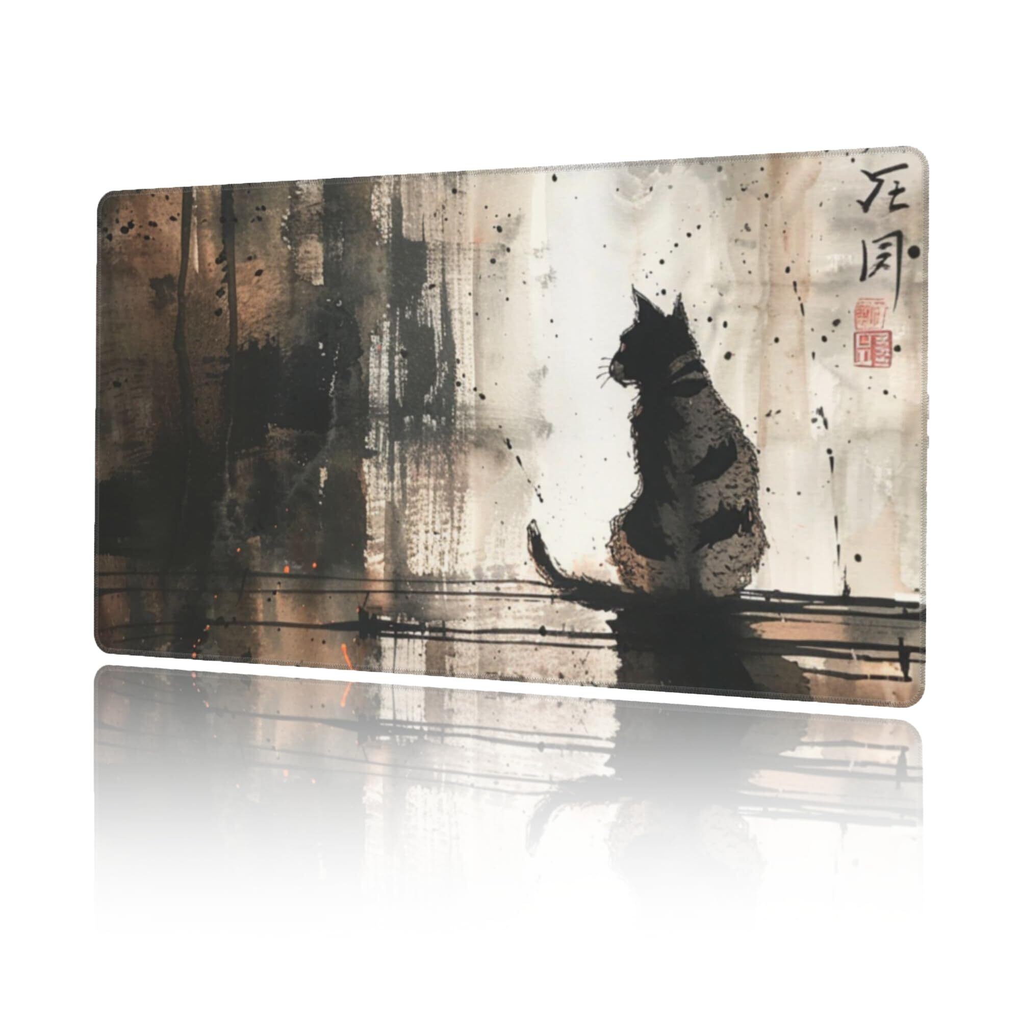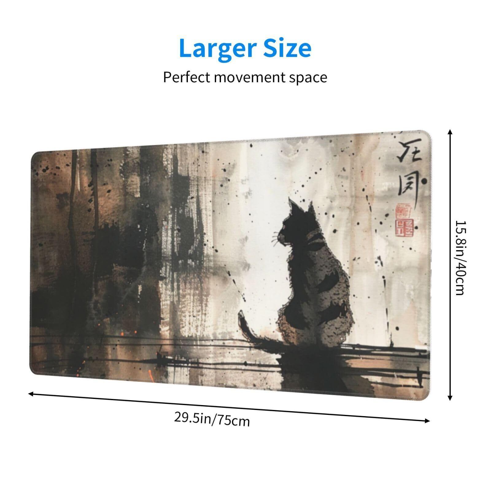 マウスパッド 大型 ゲーミング 水墨 猫 黒 灰色 マウスマット デスクマット 特大 おおきい キーボードパッド ゴム底 光学式 マウス対応 滑り止め 耐久性 良い おしゃれ かわいい 防水 サイバーカフェ オフィス最適 適度な表面摩擦 40cm X 75cm