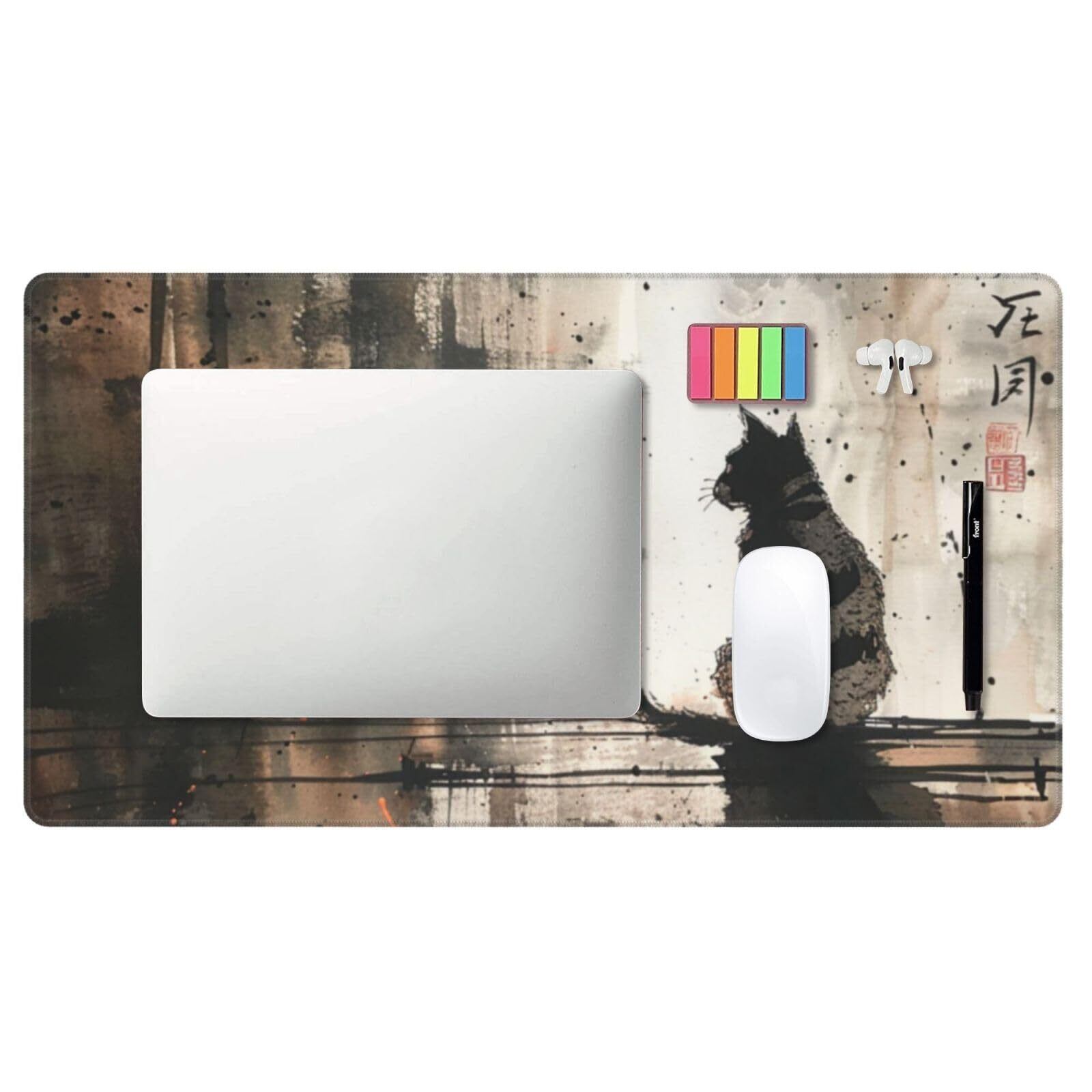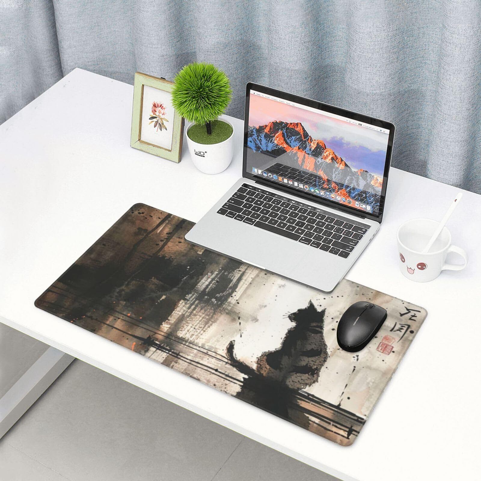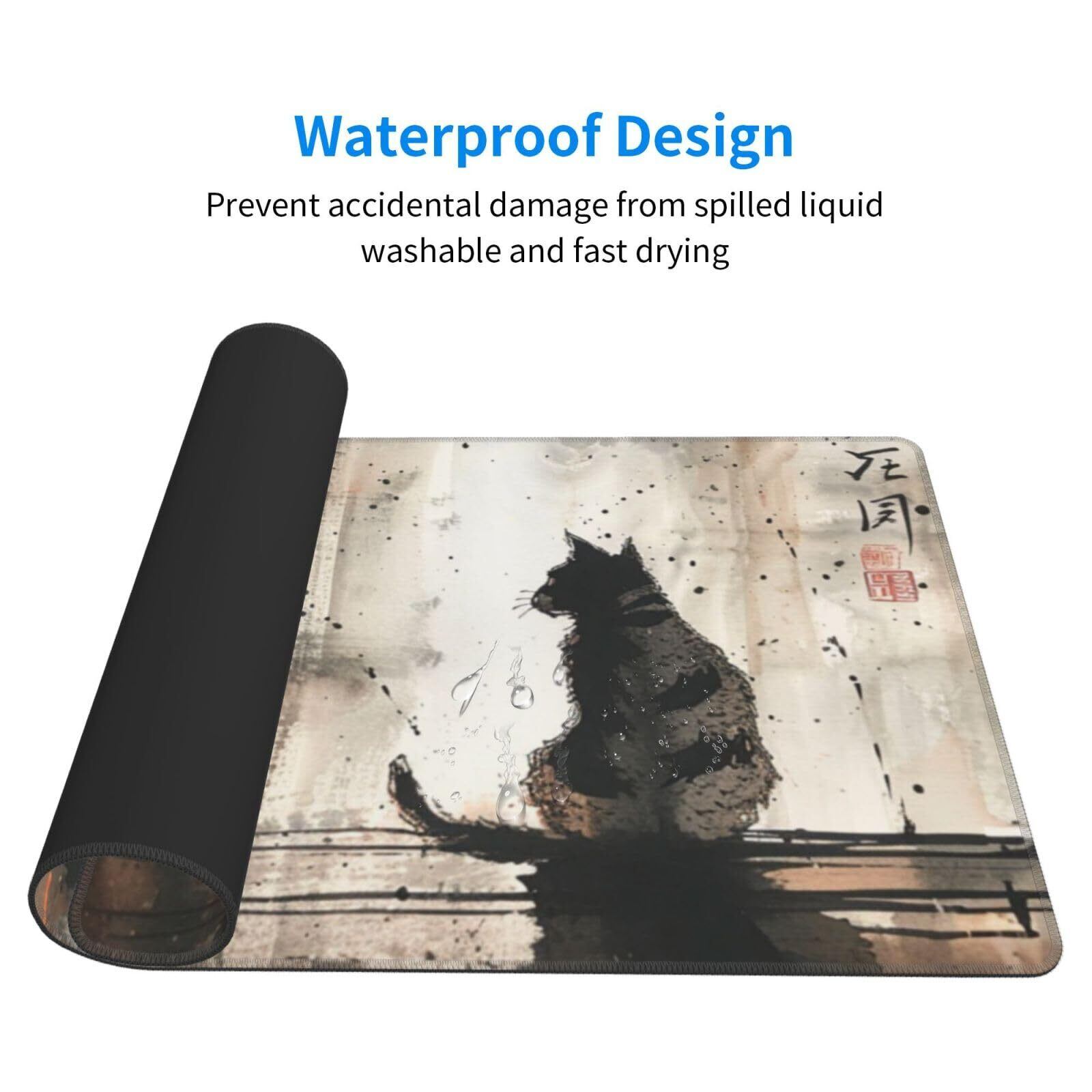 マウスパッド 大型 ゲーミング 水墨 猫 黒 灰色 マウスマット デスクマット 特大 おおきい キーボードパッド ゴム底 光学式 マウス対応 滑り止め 耐久性 良い おしゃれ かわいい 防水 サイバーカフェ オフィス最適 適度な表面摩擦 40cm X 75cm