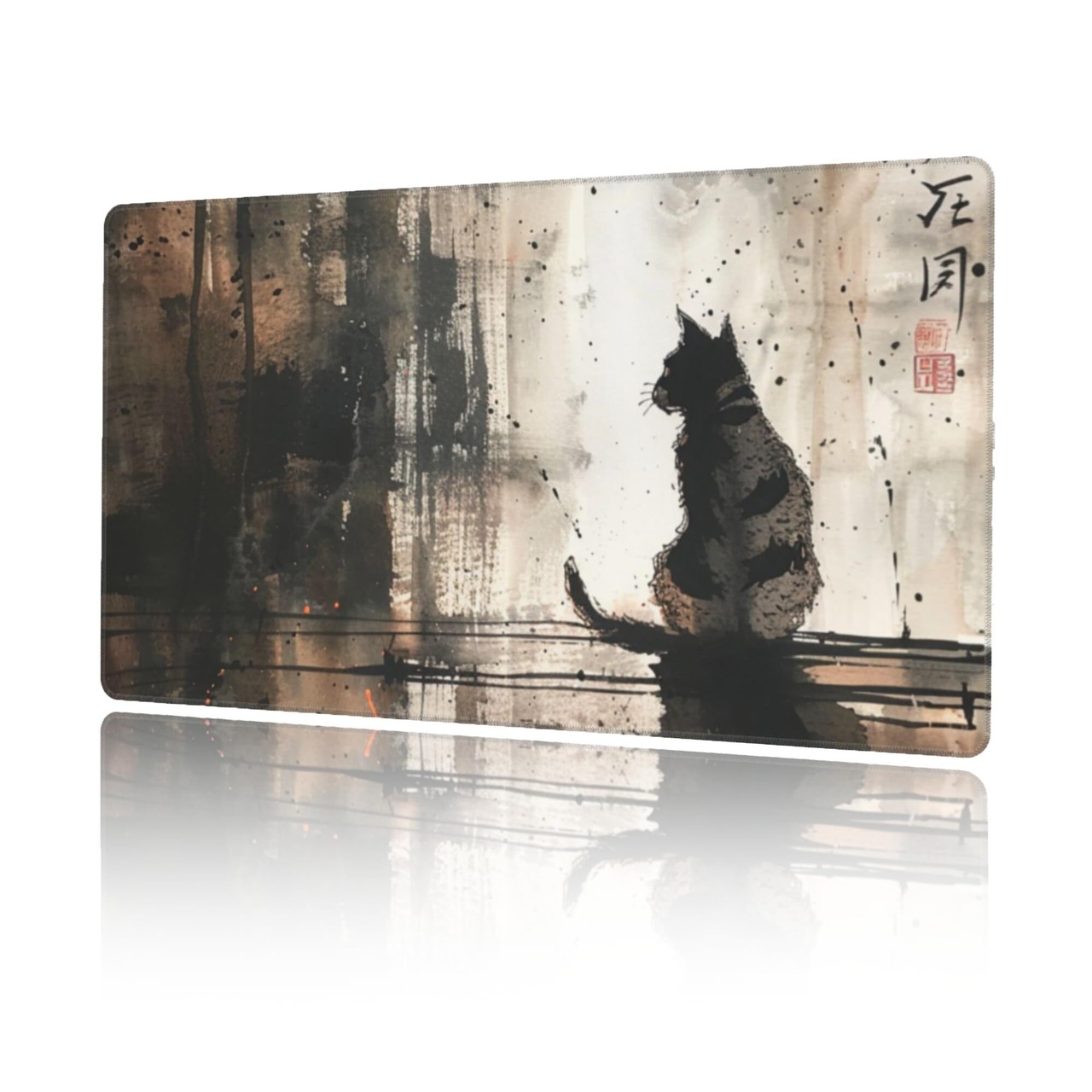 ■スタイリッシュで機能的な大型ゲーミングマウスパッド!このマウスパッドは、40cm x 75cmの特大サイズで、広々とした作業スペースを提供します。水墨画風の猫デザインが、デスク周りをおしゃれに演出します。