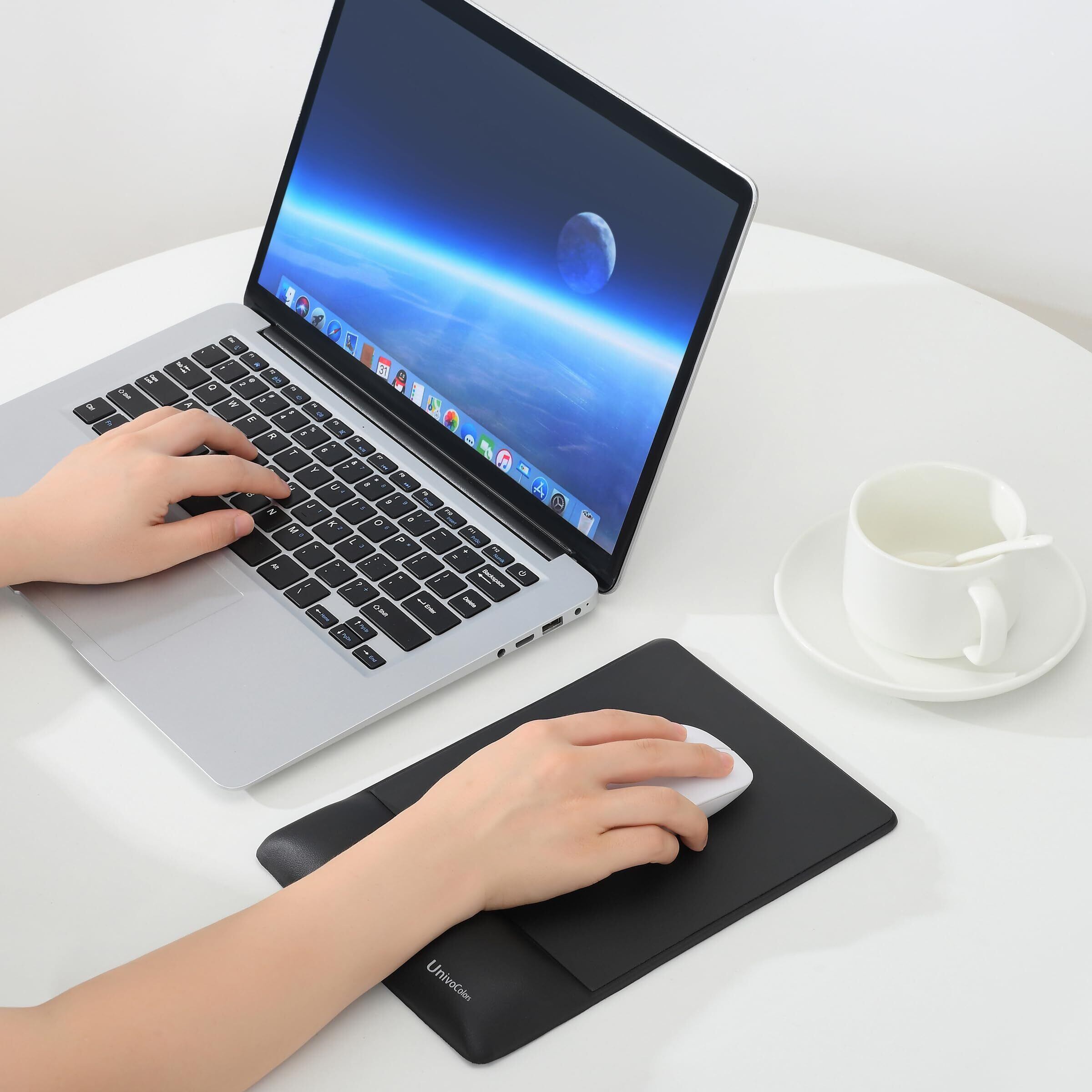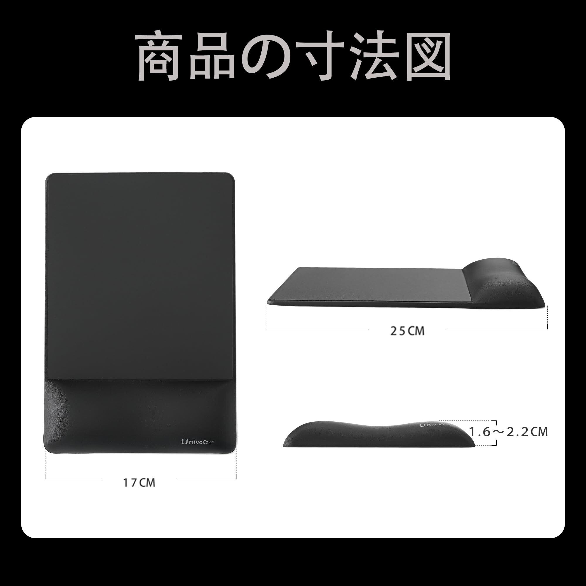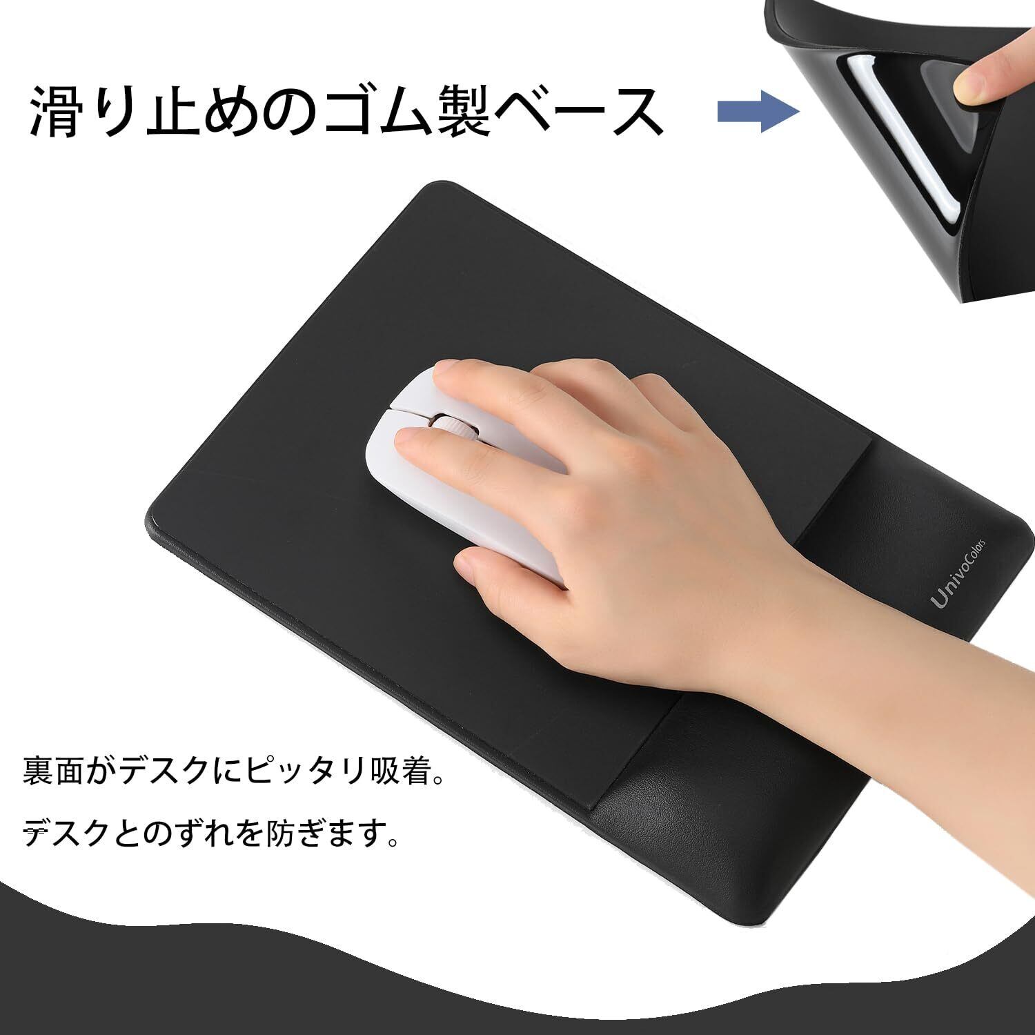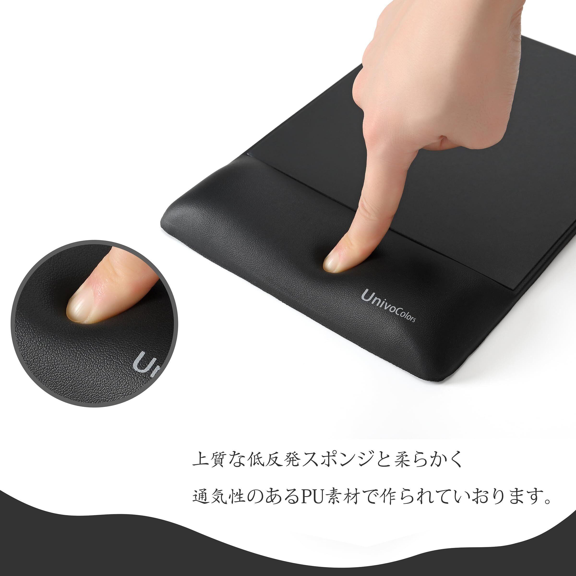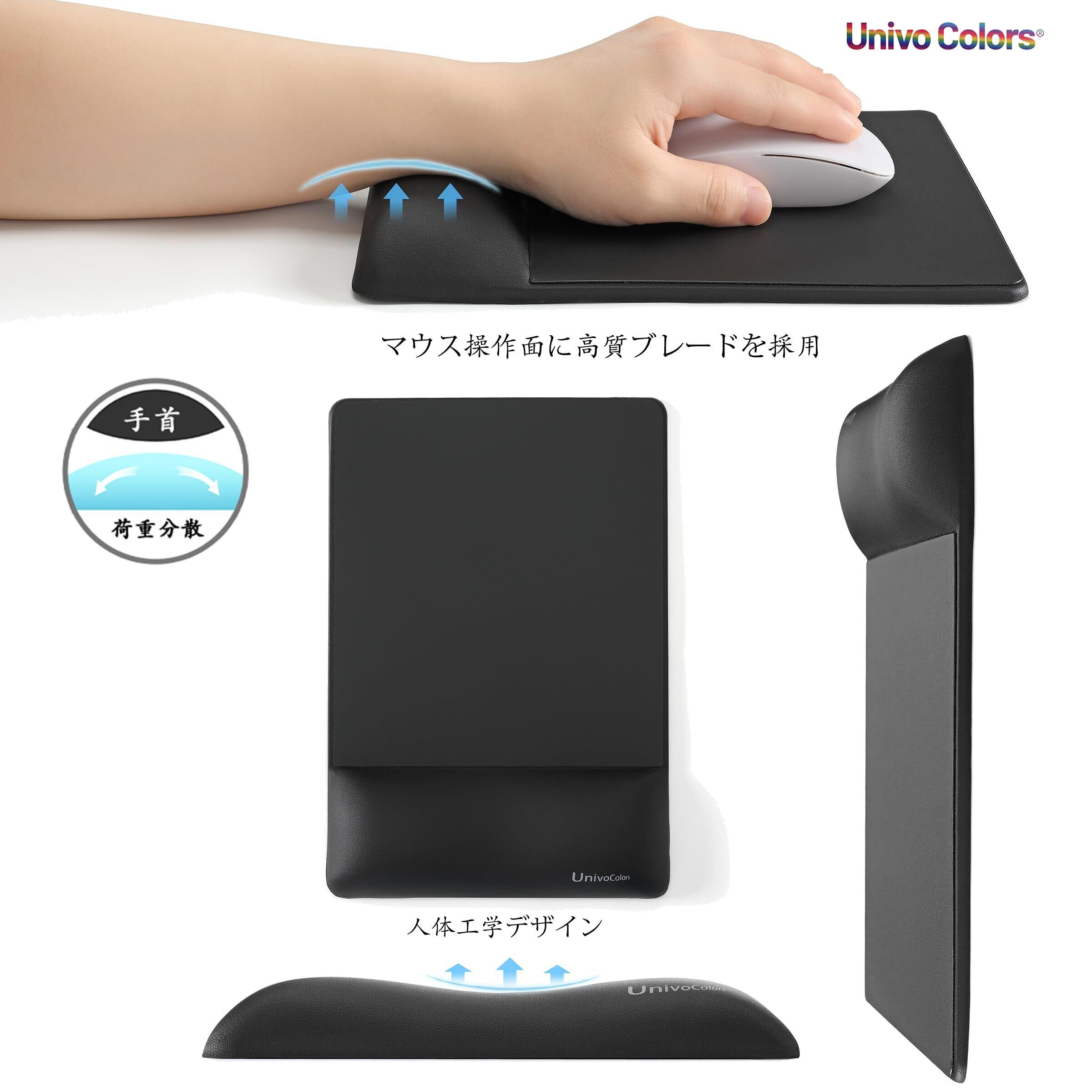 UnivoColors マウスパッド リストレスト一体型 手首置き プレミアムPU素材 人間工学デザイン 長時間操作のサポート 疲労低減 低反発クッション 手首痛み緩和 底面に滑り止め(ブラック,MP)