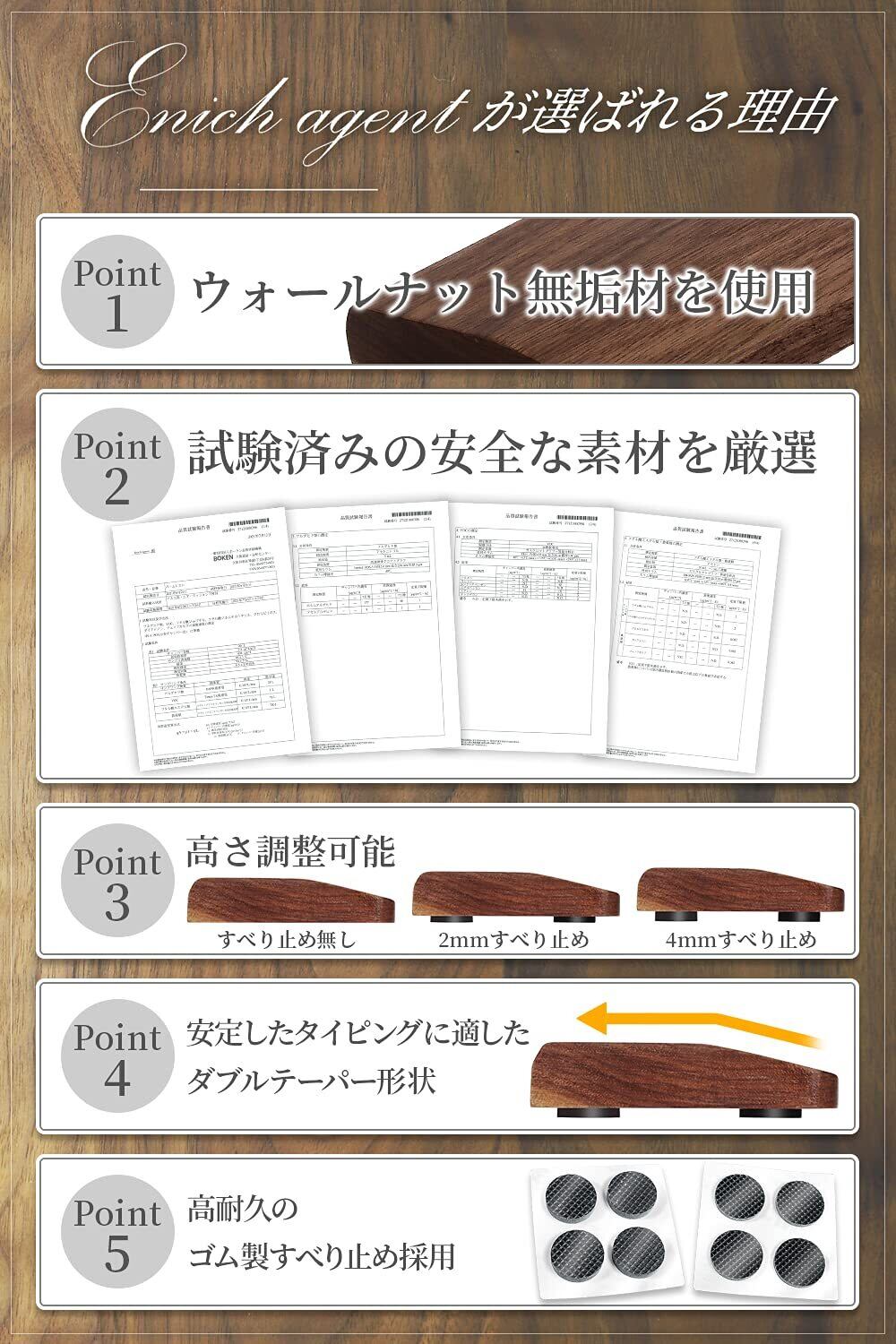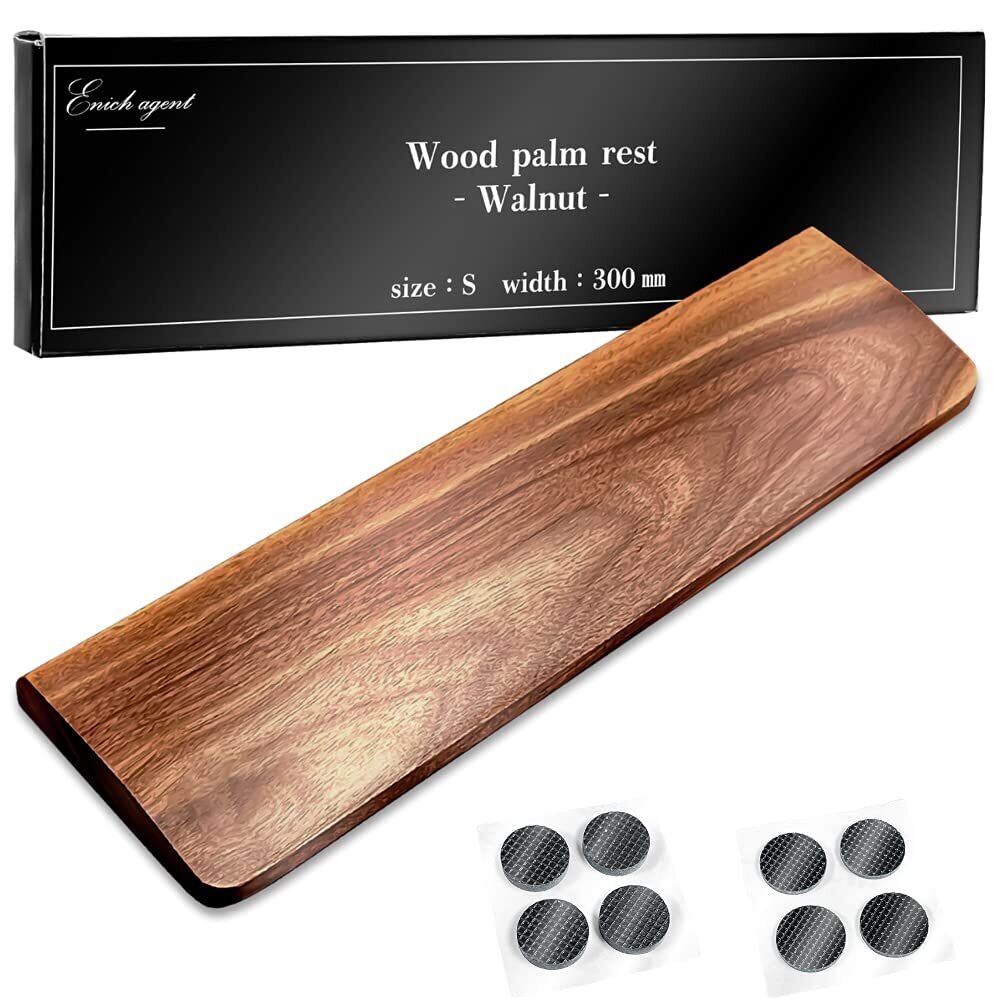 【GOODA掲載】Enich agent 木製リストレスト ウォールナット 無垢材 高級木材使用 すべり止め付 キーボード用 パームレスト 高さ調整可 (S(300mm))