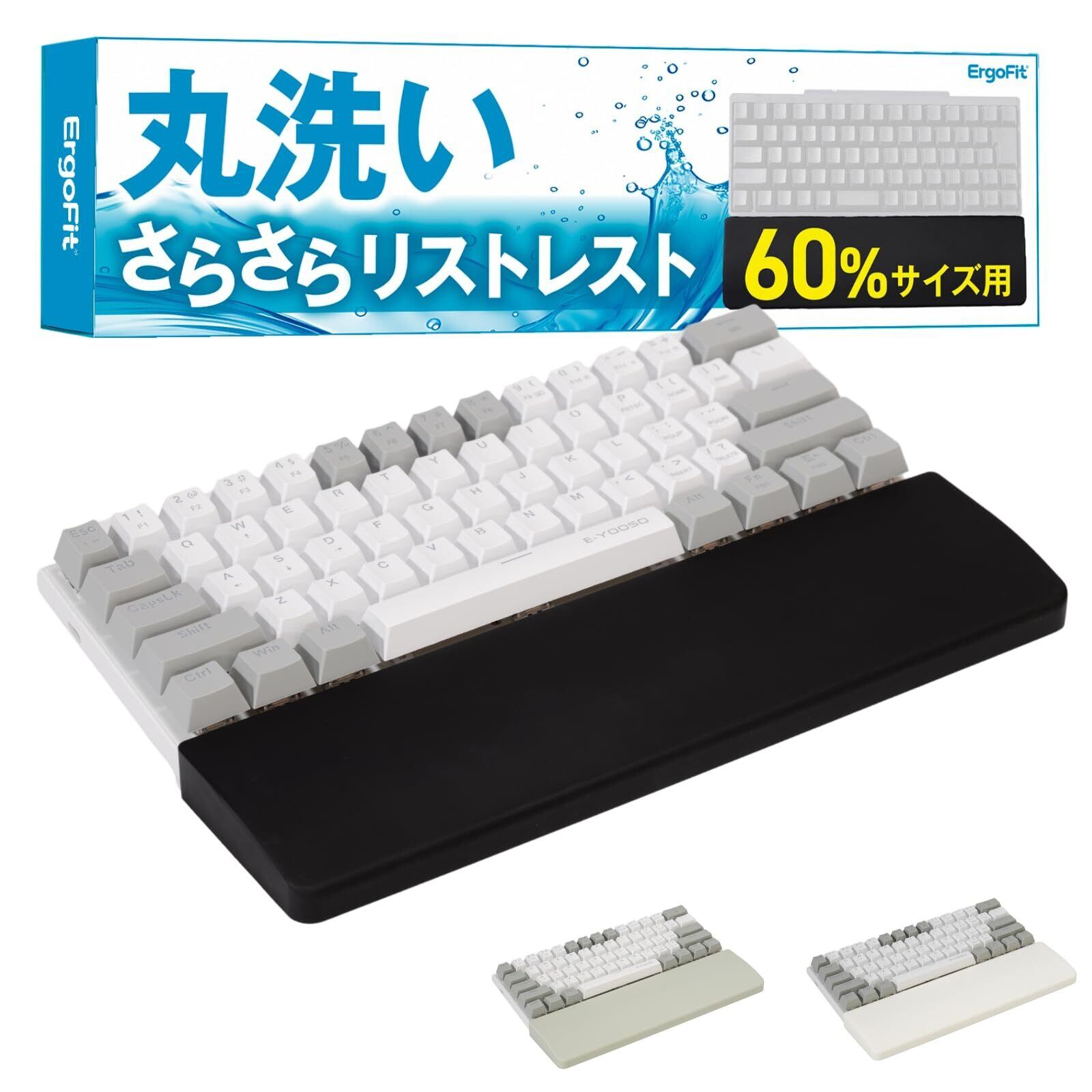 リストレスト パームレスト 丸洗い 滑り止め機能付き ゲーミング 60% 30cm 疲労軽減 疲労低減 キーボード用 シリコン製 人間工学 エルゴノミクス (ブラック)