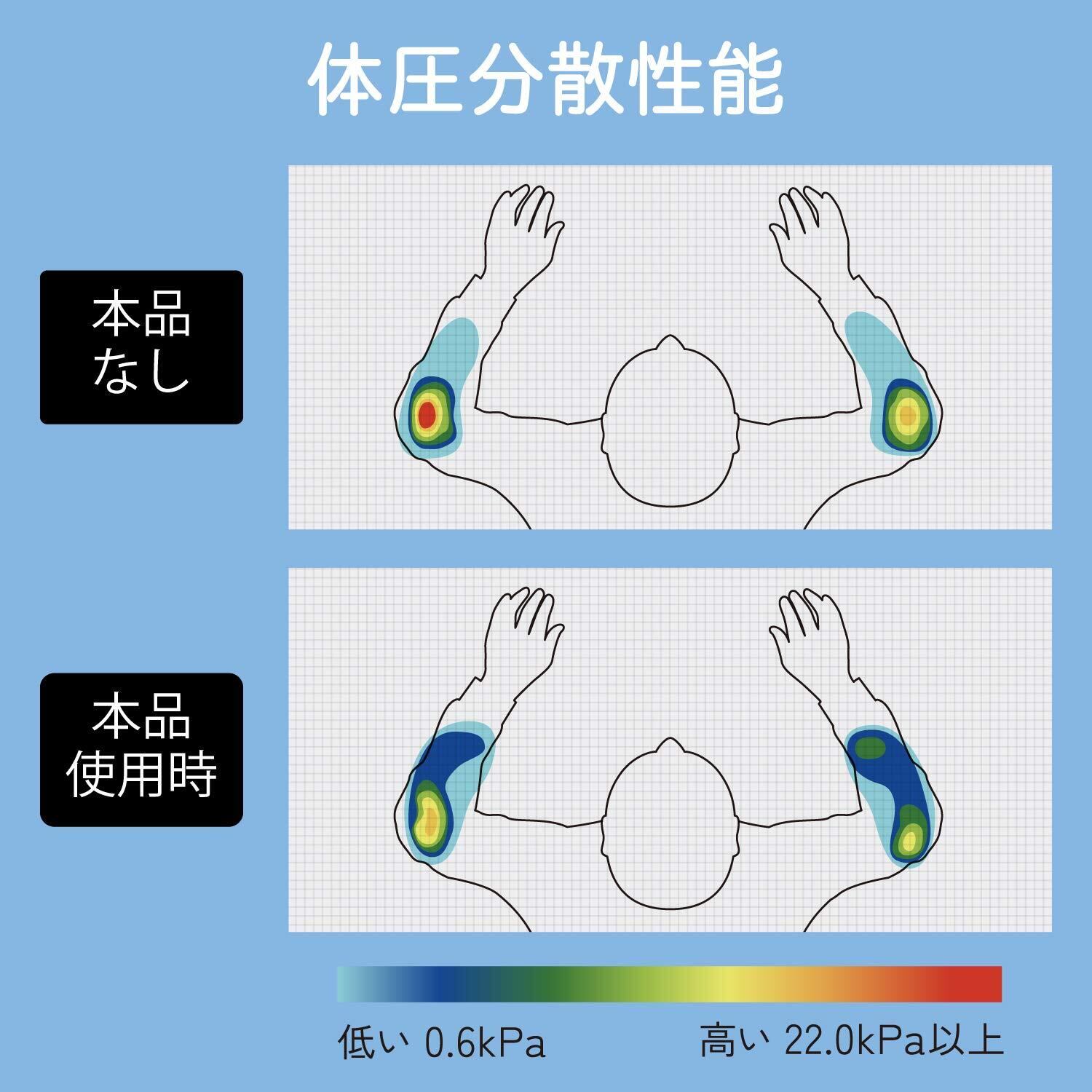 硬すぎずへたりにくいクッション素材を採用し、肘にかかる体重を分散させ負荷を和らげます。