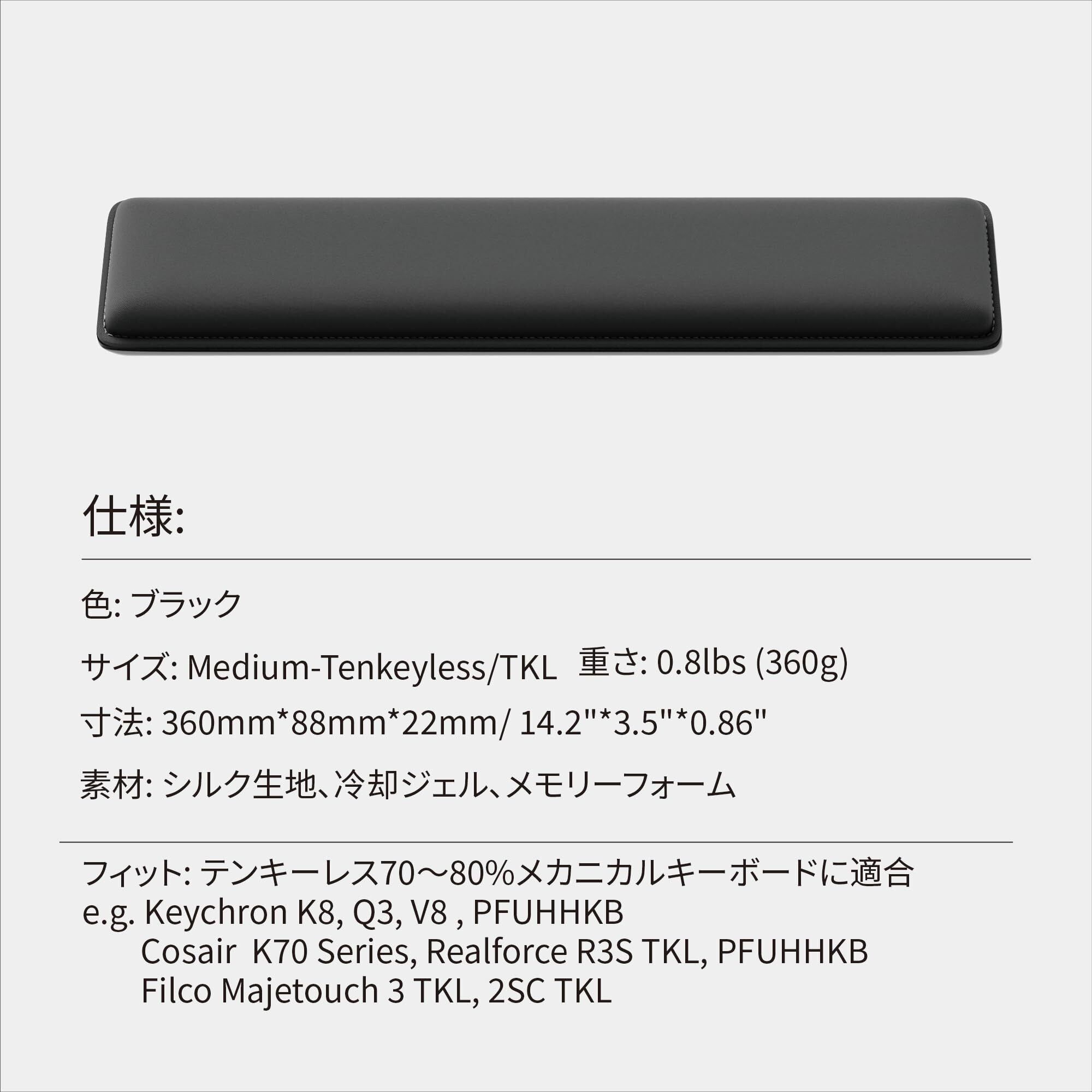【サイズ】SとMとLの3つのサイズを提供し、各種サイズのキーボードに適用できます。S-Compact(長さ:315mm、幅:88mm、厚さ:22mm) M-TKL(長さ:361mm、幅:88mm、厚さ:22mm)、L-Full Size(長さ:454mm、幅:88mm、厚さ:22mm)。