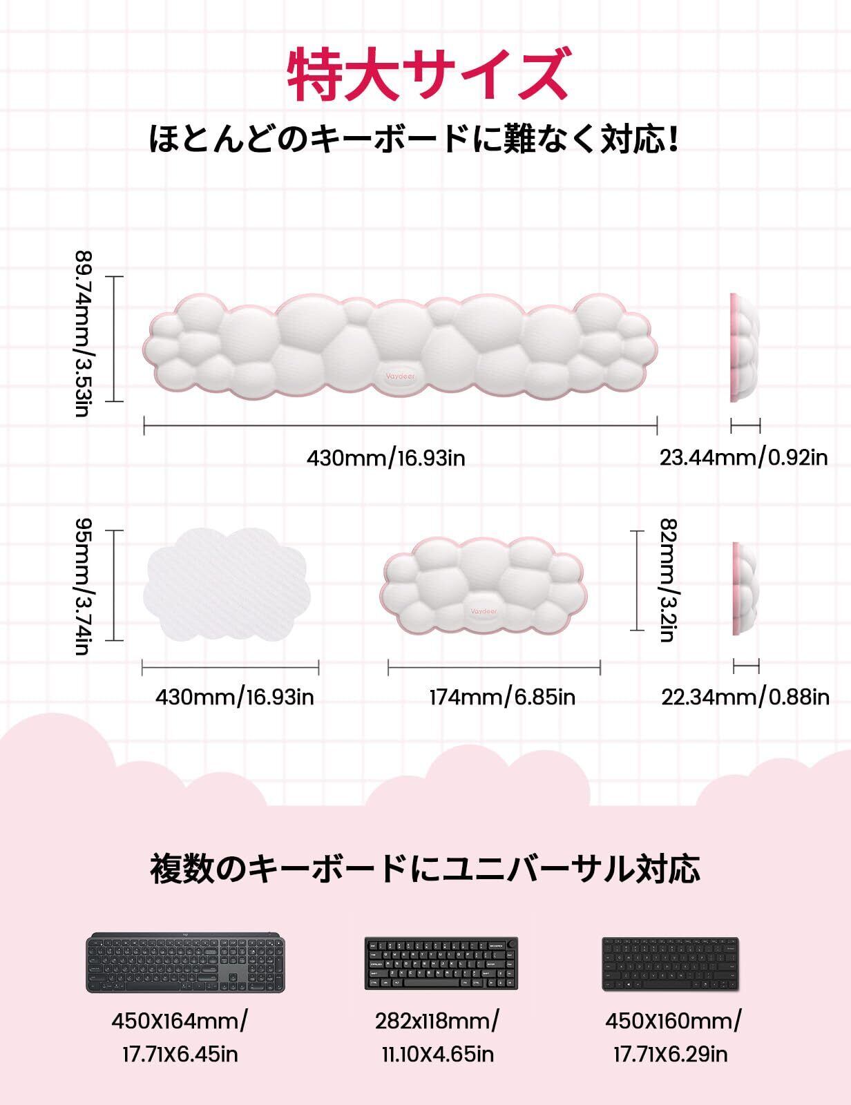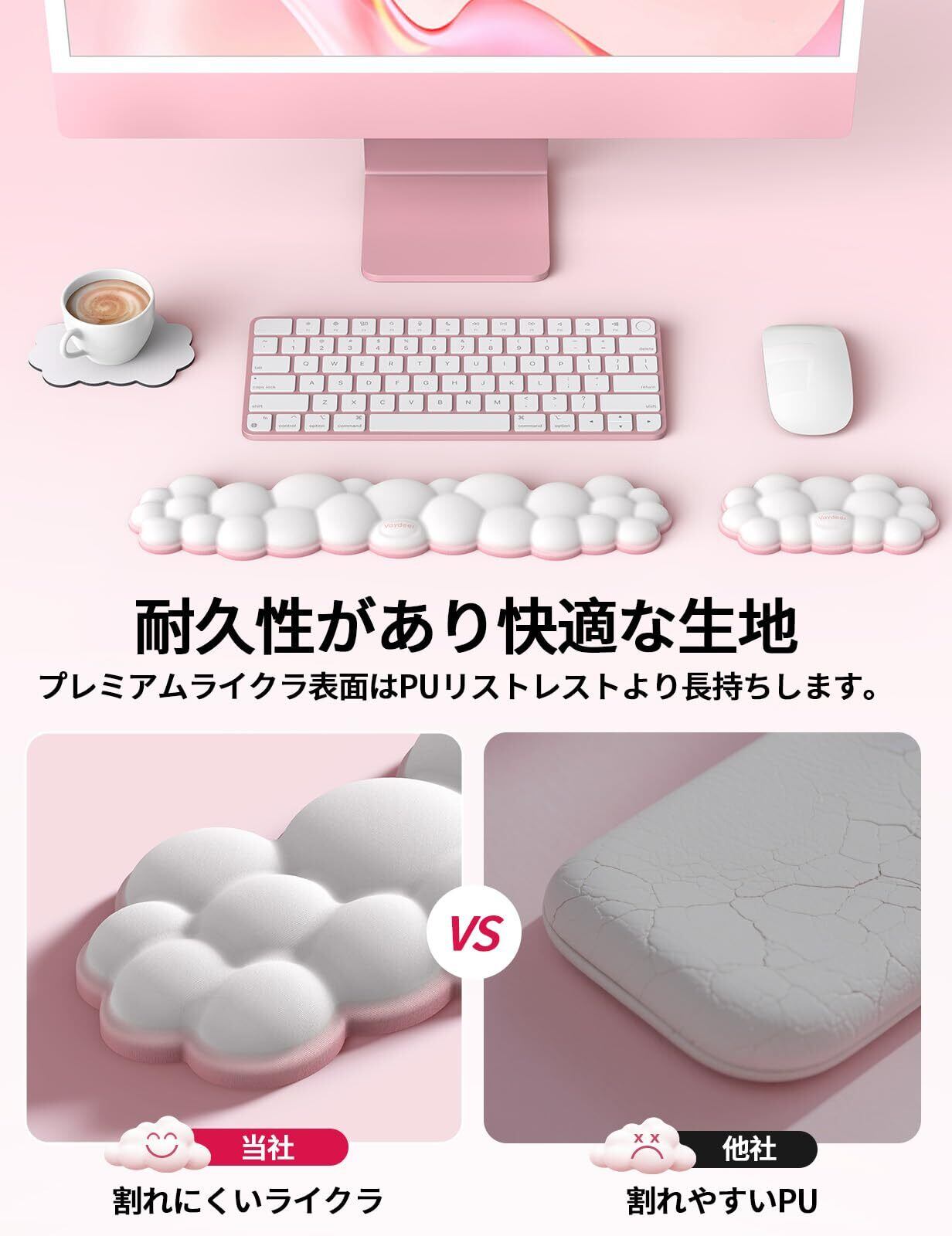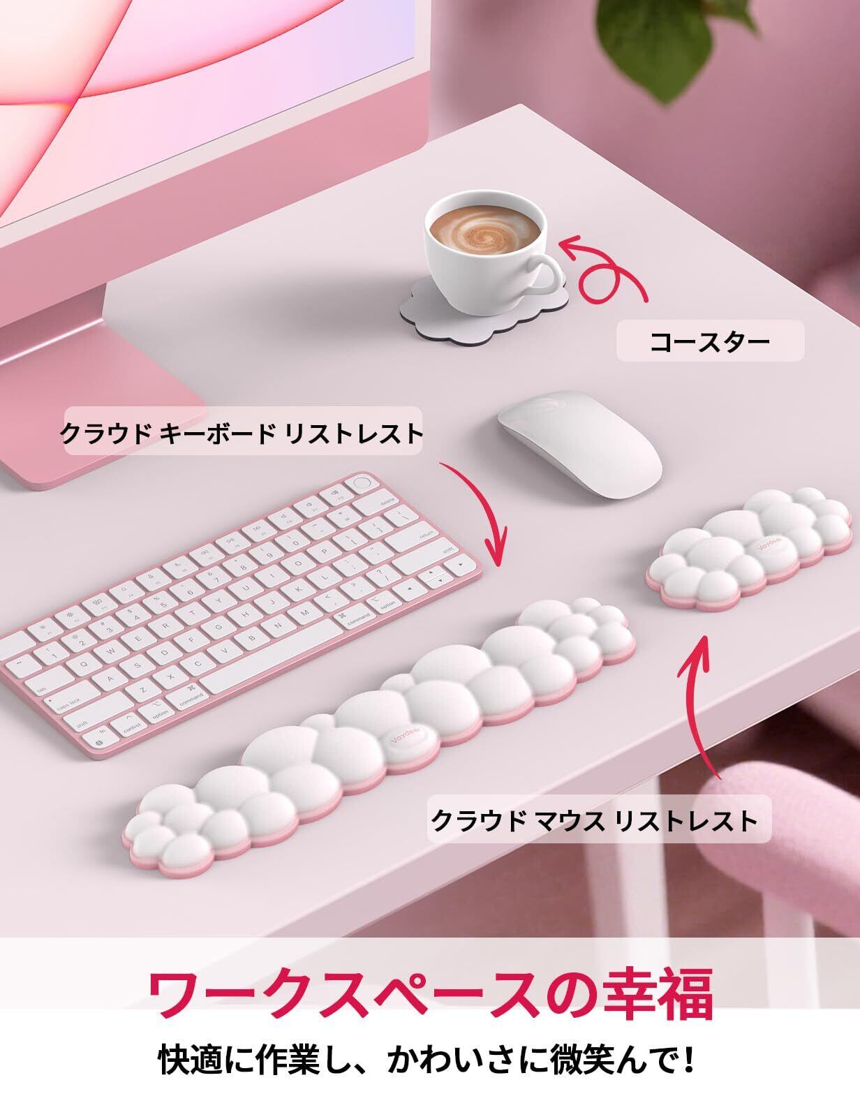 VAYDEER リストレストセット クラウド キーボード 手首置き 低反発 パームレスト クッション 人間工学デザイン 可愛いデスクアクセサリー コンピュータ/タイピング/オフィス/仕事/家庭/ゲーム用 Wrist Rest Set(キーボードレスト+マウスレスト+コースター)