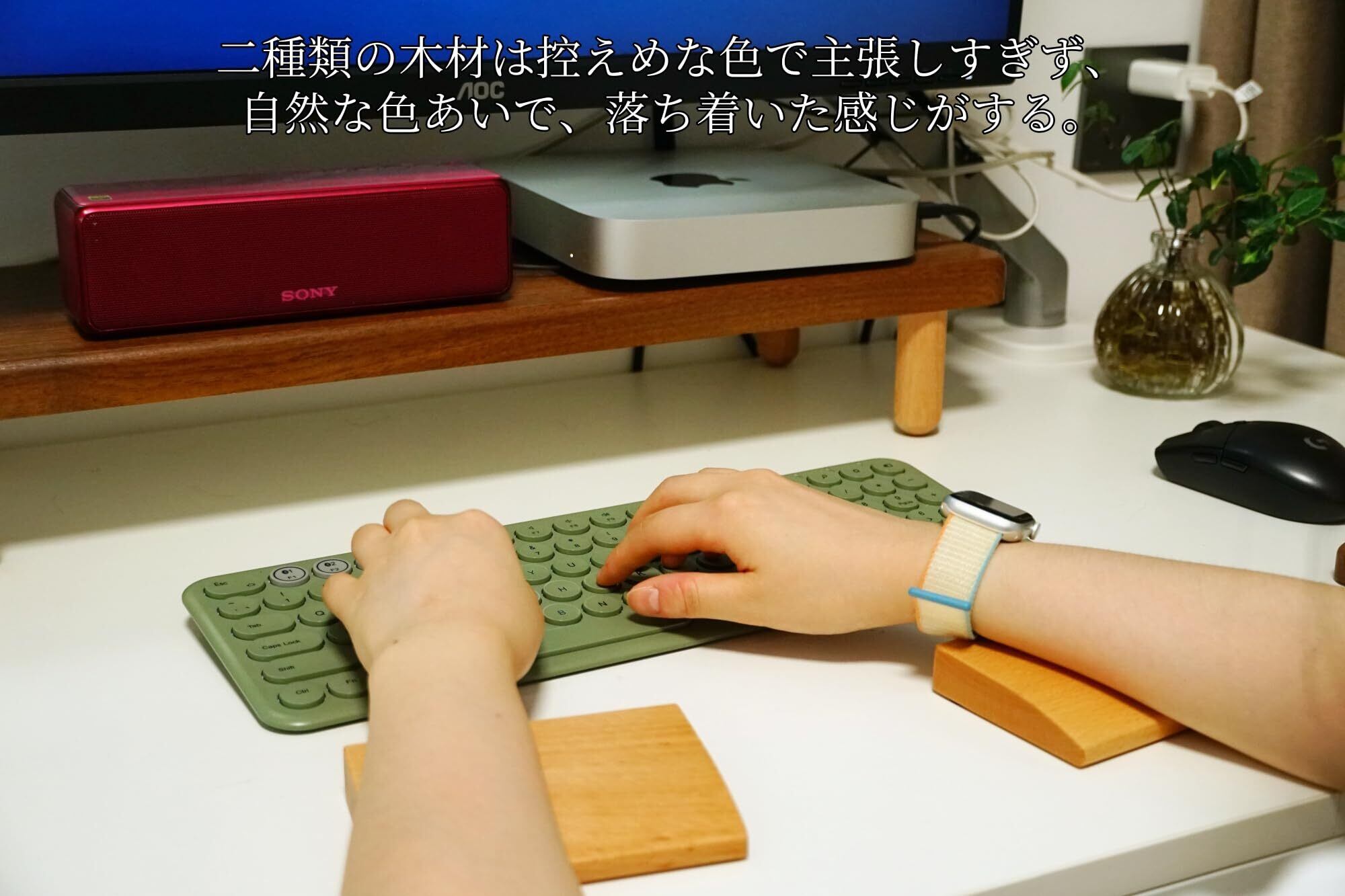 このリストレストは、環境に優しい天然木素材で作られ、長持ちする耐久性を備えています。また、デザイン性も高く、どんなデスクインテリアにもマッチします。自分だけのパーソナルスペースを演出するのにぴったりなアイテムです。