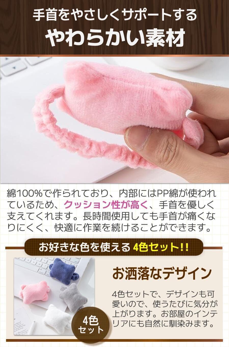 fogman リストレスト マウス クッション 手首 オフィス 自宅 パソコン 4色セット