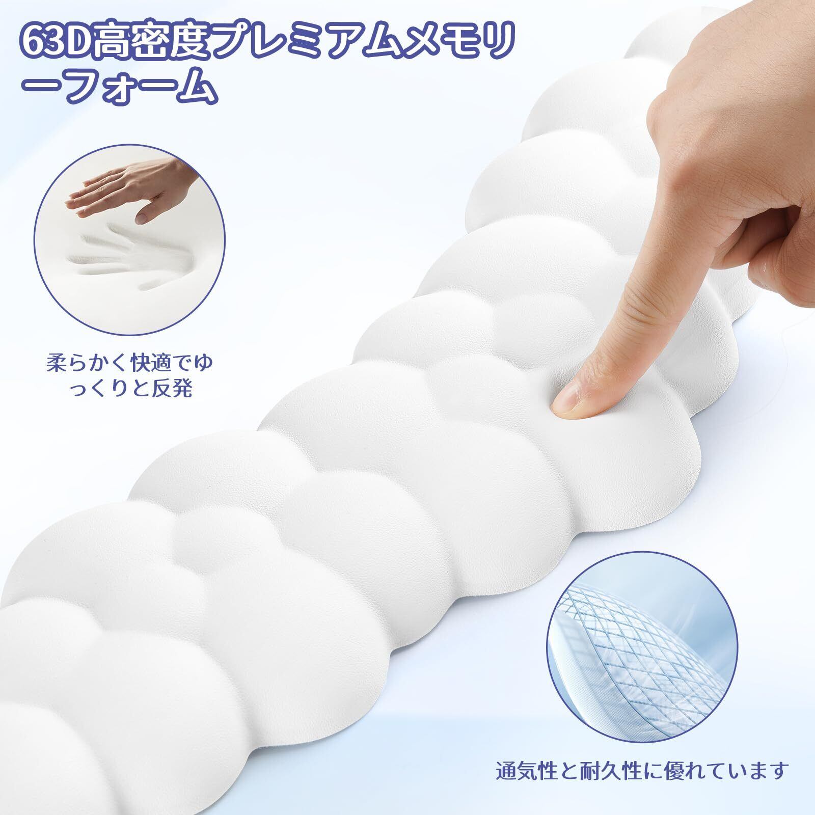 雲状リストレスト キーボード&マウス用セット 低反発パームレスト PUレザー素材 人間工学設計 滑り止め付き かわいい マウスパッド 手首サポート デスクアクセサリー(白)