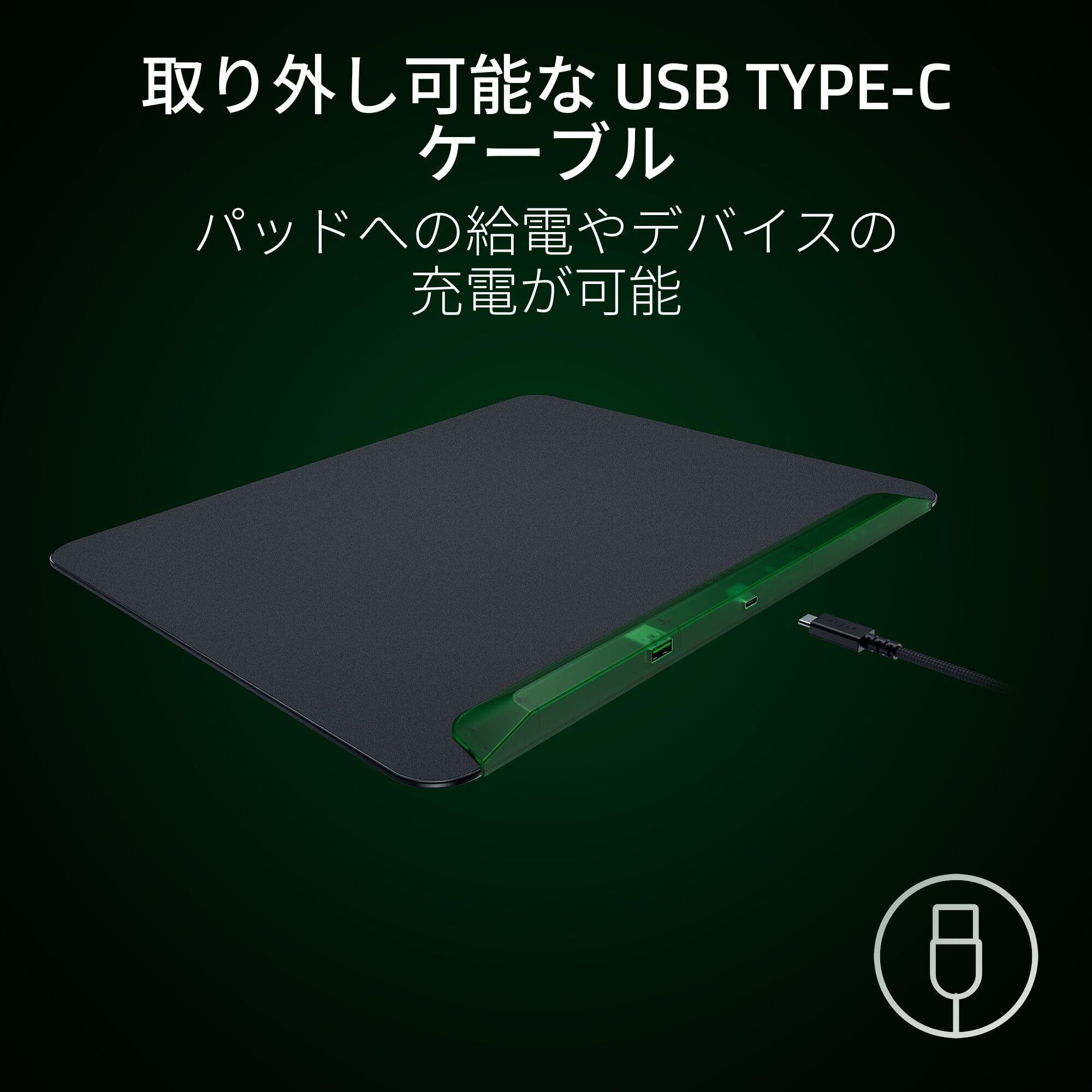 【取り外し可能な USB Type-C ケーブル】 長時間ゲームをした後も、マウスパッドへの給電からワイヤレスマウスもしくは他の USB Type-C デバイスの充電に素早く切り替えることができます。