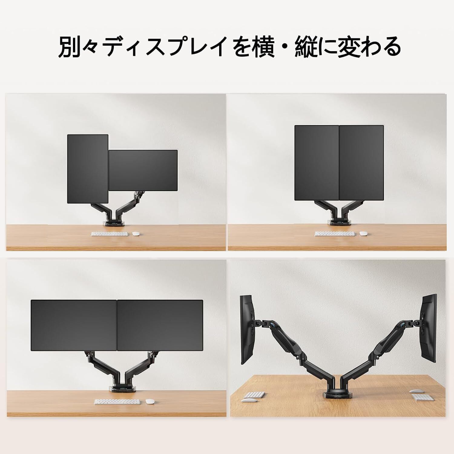 【組立・取付簡単】クランプ固定とグロメット固定二つの取付方法があります。机にしっかり固定するので、液晶ディスプレイの転倒を防ぎ、耐震にも効果があります。組立のすべて部品は付属しています、簡単に取り付けできます。商品の品質には十分注意を払っておりますが、初期不良、欠品、及び配送中の事故等での破損が生じた場合、返品や交換対応をさせていただきます。組み立てについて、何かご問題、ご不明な点がございましたら、ぜひ、ご遠慮なく、こちらに連絡してください。