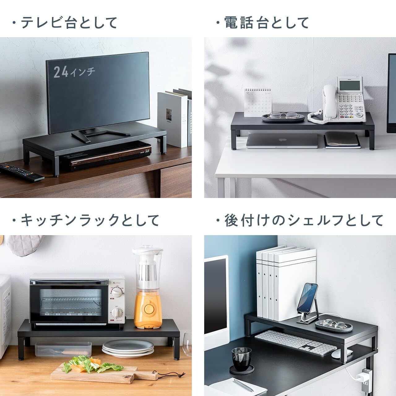 このモニター台は、パソコンだけでなく、プリンターや小型テレビの台としても最適です。シンプルで洗練されたデザインは、どんなデスクにもマッチします。