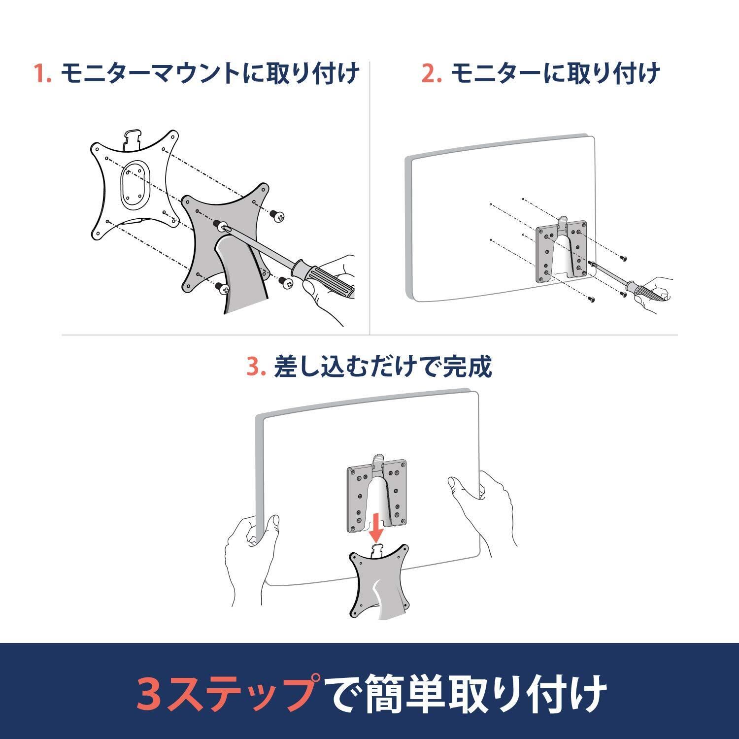 モニターを一瞬で取りつけ/取り外し可能にするブラケットです。