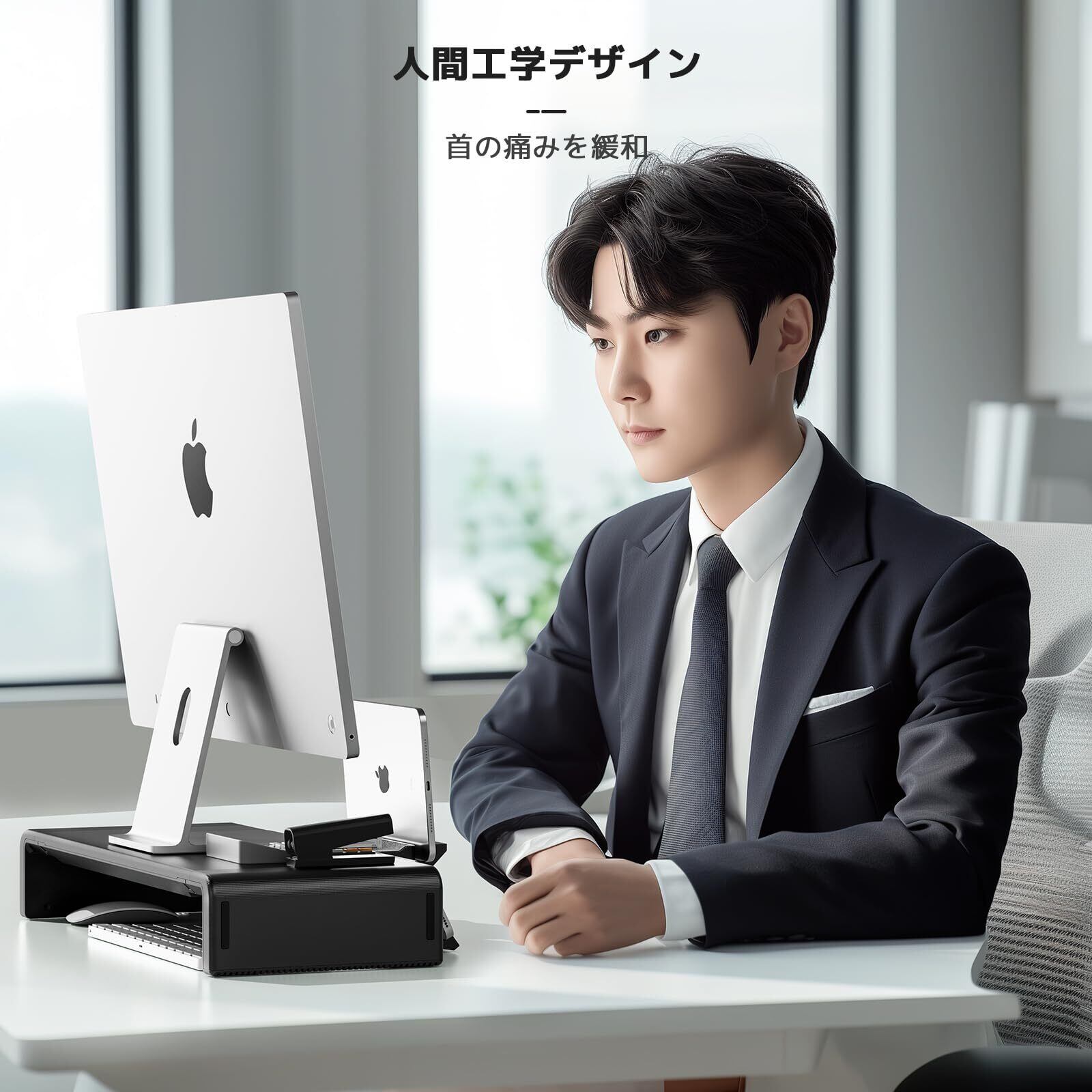 人間工学を追求:モニターを8センチ持ち上げることができる人間工学に基づいたデザイン。視線が自然に上がり、背筋を伸ばすことができます。姿勢を正しく保つことができれば、楽な作業ができます。