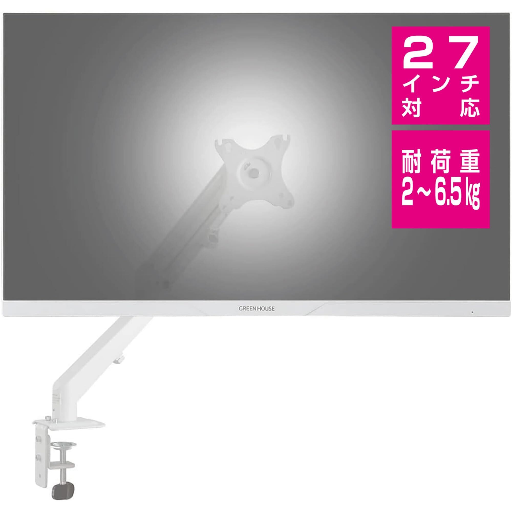 グリーンハウス モニターアーム ガス圧式 17-27インチ対応 耐荷重2-6.5kg 3年 4軸 直販Web限定モデル GH-AMDJ1-WH