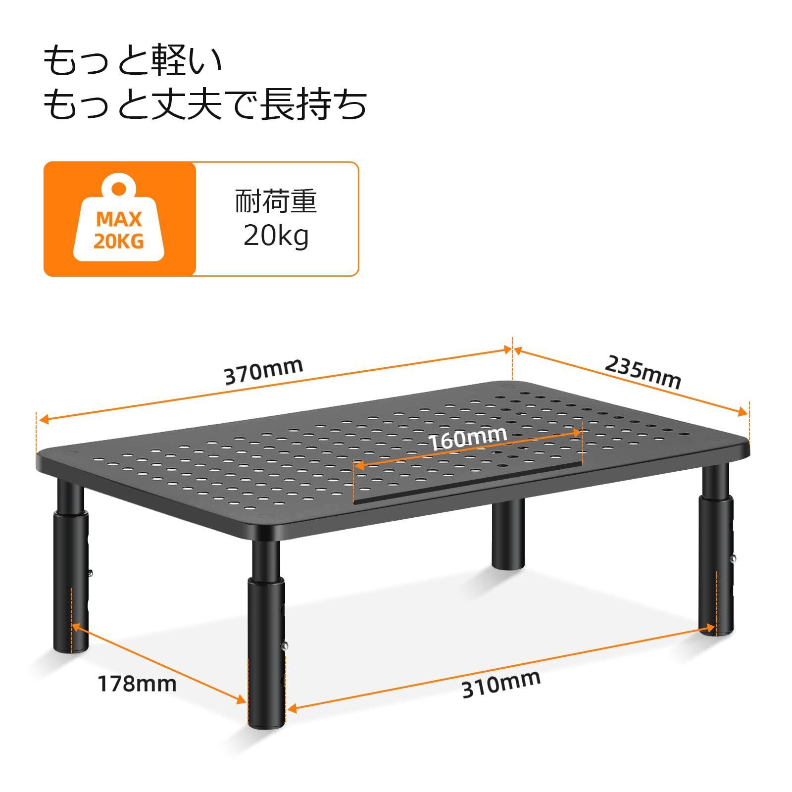 【丈夫で安定性抜群】頑丈なスチール製で、しっかり物を支えます。脚の下部にはゴムパッドがあるので、滑り止めることができて、傷を防止することもできます。20kgまでのノートパソコンとモニターを載せることができます。