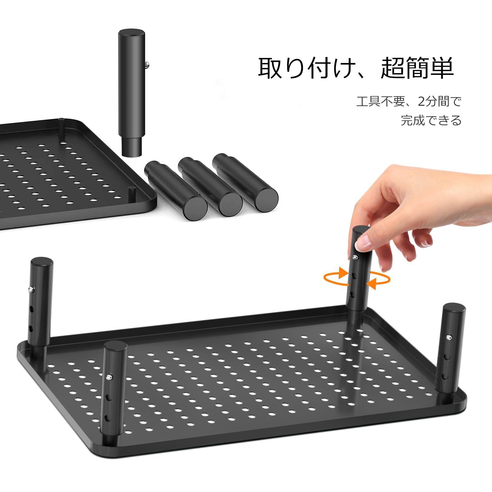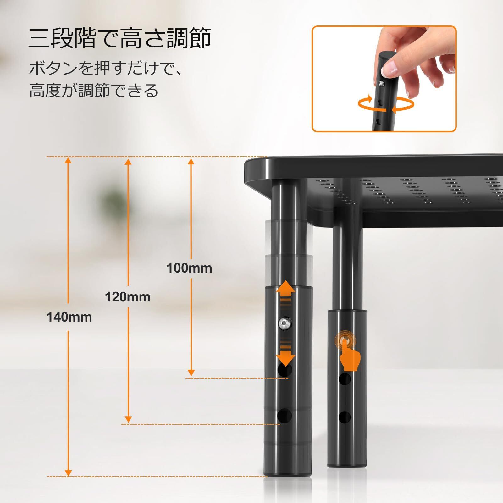 【製品仕様】幅:37cm 奥行き:23.5cm 高さ:10-12-14cm三段階高さ調整可能▶天板下 幅:31cm 奥行き:17.7cm▶材質:スチール▶最大耐荷重:20kg