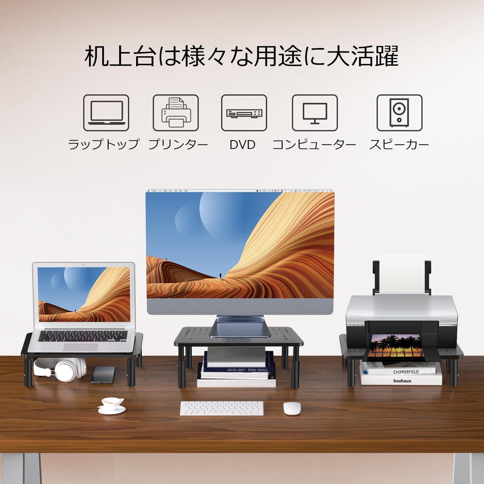 【取り付け簡単&多機能】 工具不要!ただ2分で取り付ける完了が可能です。本体は軽量で持ち運びも便利で、実用な机上台です。モニター以外に、プリンターや電話機、FAX、本など色々なものが設置できるのでシーンを選ばる多機能に使えます。オフィス、寮、学校や研究室やりピングルームなどの場合もオススメです。