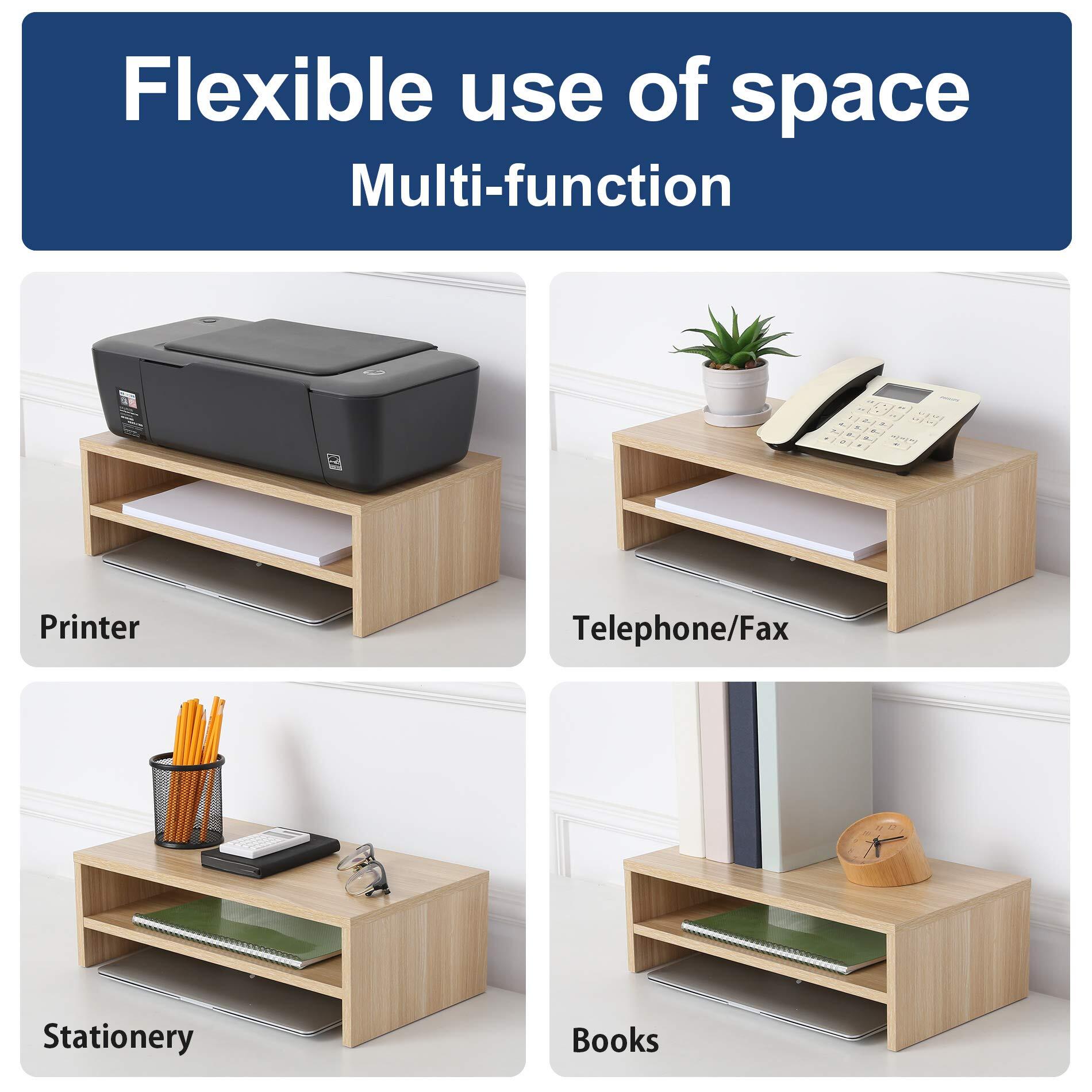 FITUEYESモニター台 机上台 2段パソコン台 スタンド幅42.5cm横幅 木製天板 PC台卓上 デスクトップ用 パソコンラック キーボード収納オークDT204201WO