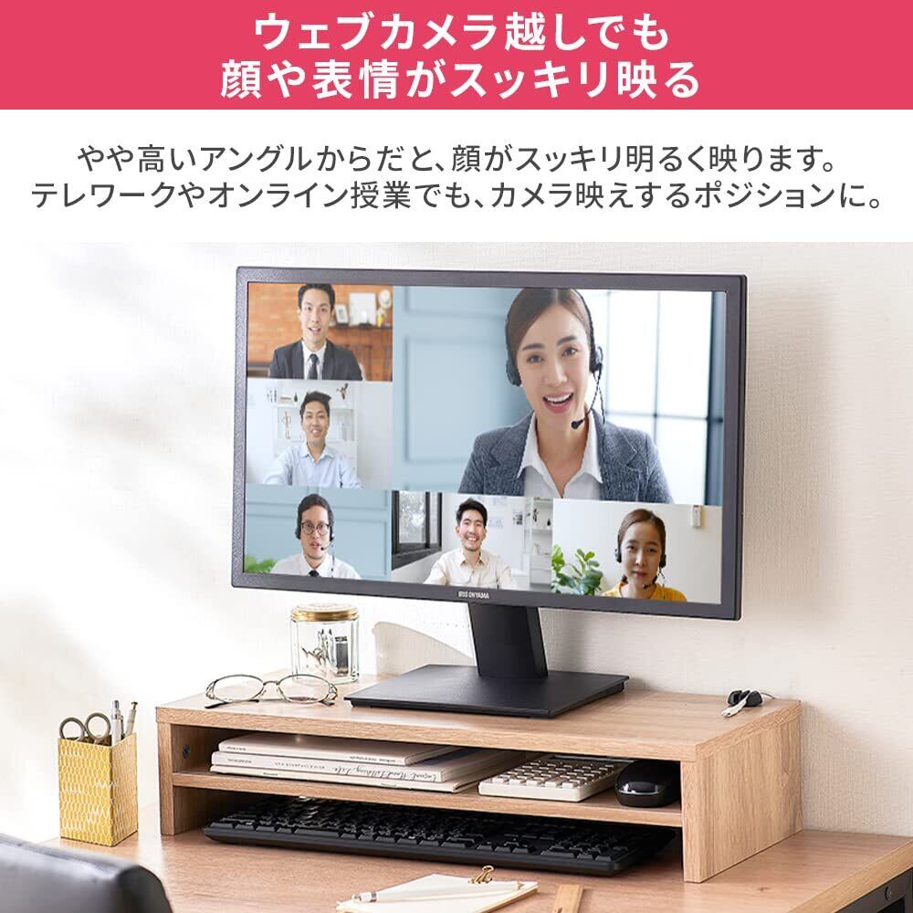 アイリスオーヤマ デスクがスッキリするモニター台 幅59cm 収納棚付き ホワイト 収納領域の大きなワイド設計 目線が上がるので首肩の負担が軽減 インテリアになじむシンプルデザイン ほこりが溜まりにくいフラット設計 モニター台 パソコン台 ディスプレイ台 机上台 PC台 プリンタ台 キーボード マウス収納 幅約59×奥行約25×高さ約13cm MNS-590T 収納あり