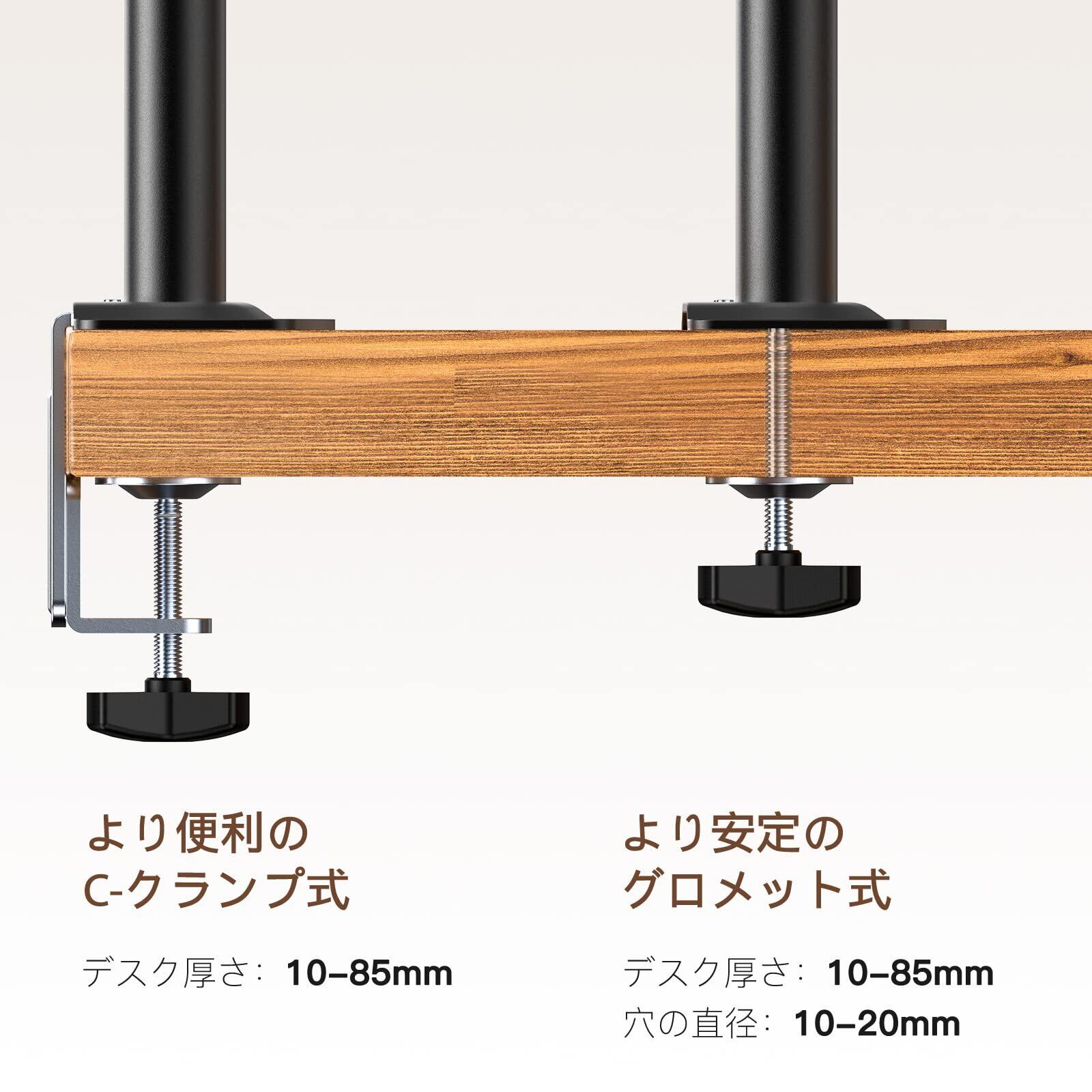 HUANUO (ファーノー) モニターアーム ディスプレイアーム ガス式 VESAアーム クランプ式&グロメット式 PCアーム 17~32インチ対応 耐荷重2~8kg 角度調節 ケーブル管理 HNSSK1