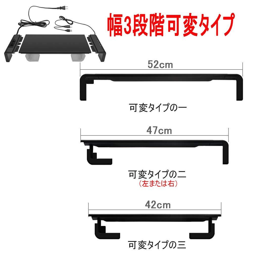 モニター台 4*USB2.0 & 2口コンセント付き パソコンモニタースタンド キーボード収納 PC机上台 アクリロニトリルブタジエンスチレン (ABS)製 幅(42/47/52CM)三阶可调x奥行20×高さ8cm 組立かんたん (Large)