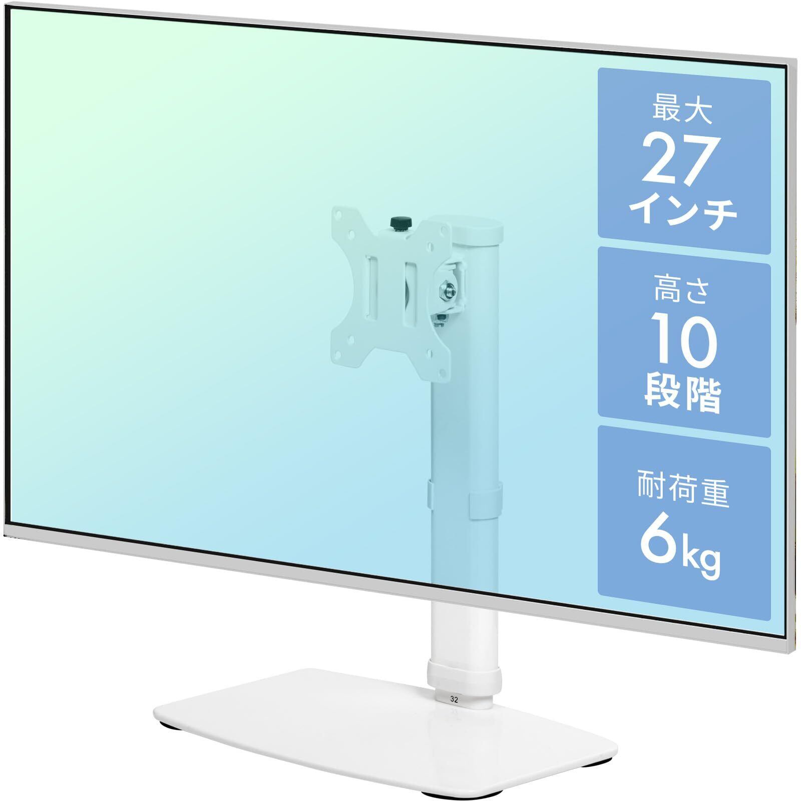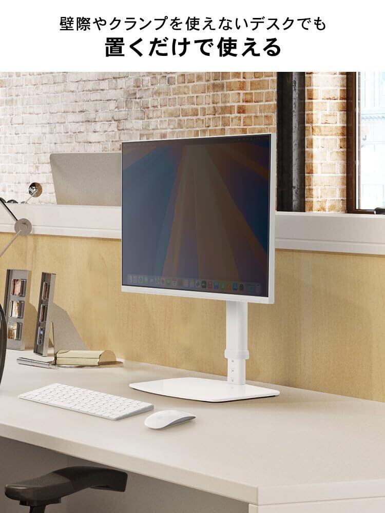 イーサプライ モニタースタンド モニターアーム 置き型 27インチ程度 耐荷重6kg 高さ変更 360度回転 上下左右可動 VESA ホワイト EEX-LA020