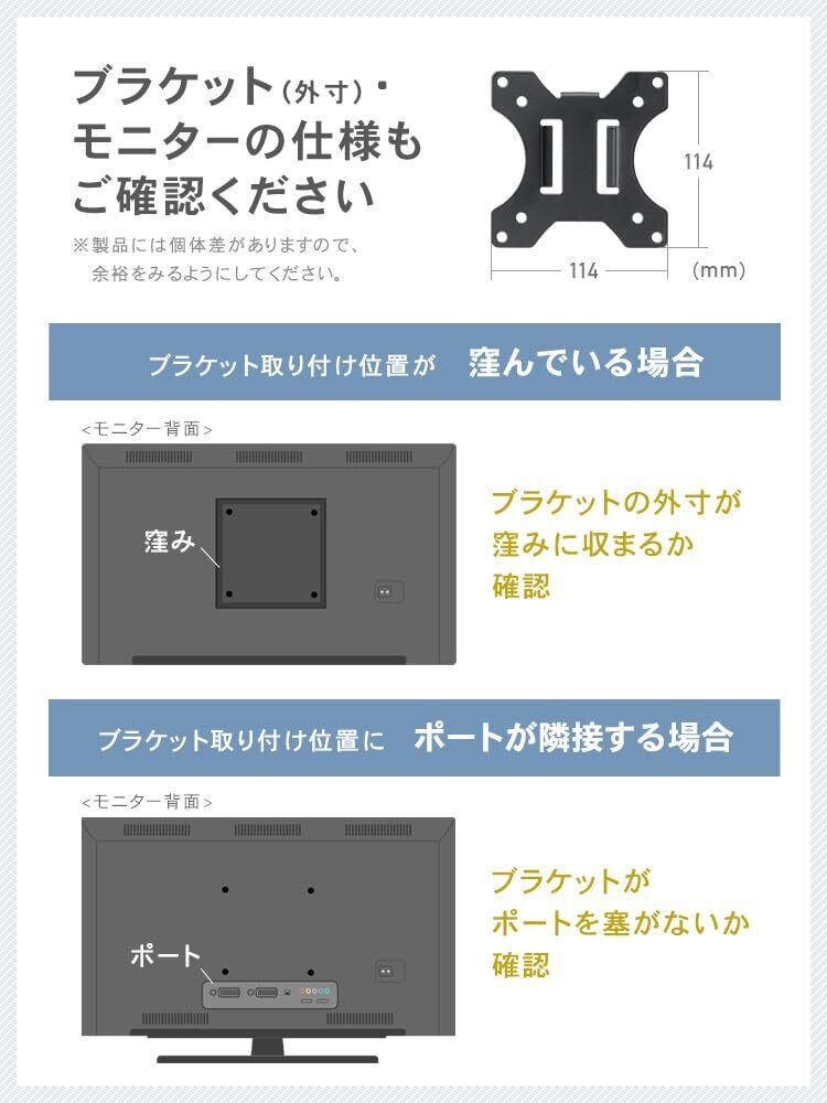 ※設置するモニターサイズにより、角度調節や回転の範囲が通常より制限される場合があります。 ※モニターの重量によってアームの動きの固さは異なります。