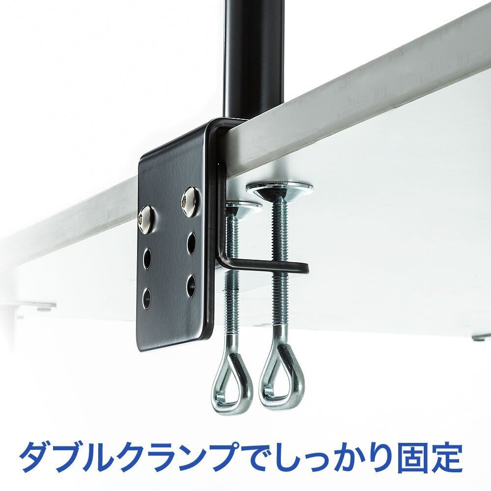 クランプ式の設計により、デスク上にスペースを確保し、ケーブル管理がしやすくなります。デスクが広くなり、作業効率が格段に向上します。シンプルなデザインはどんなインテリアにも合い、スタイリッシュな雰囲気を演出します。